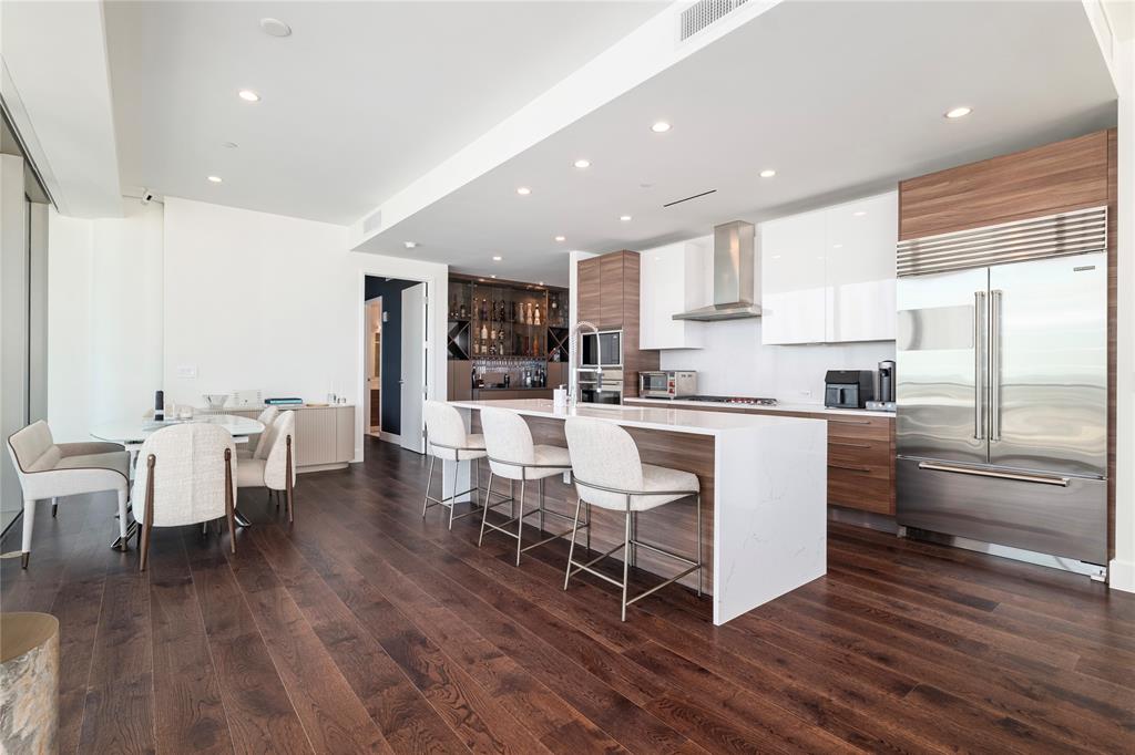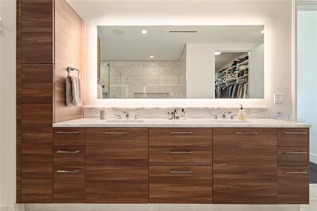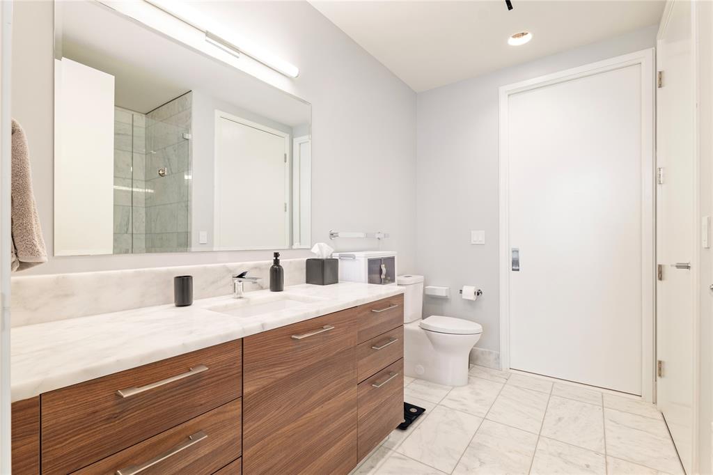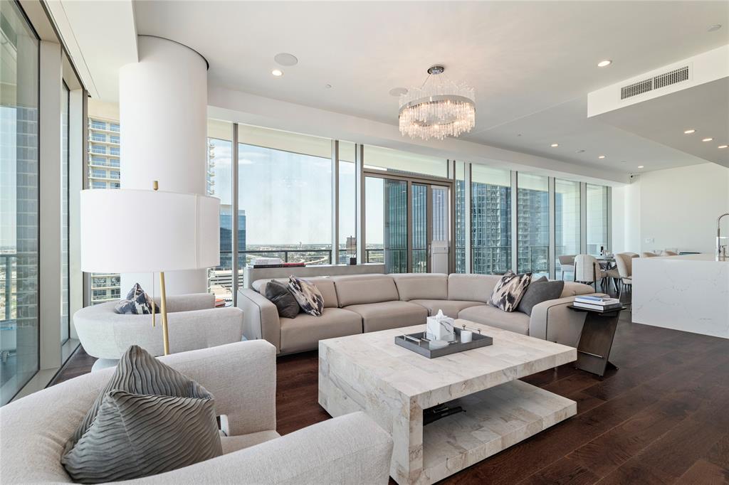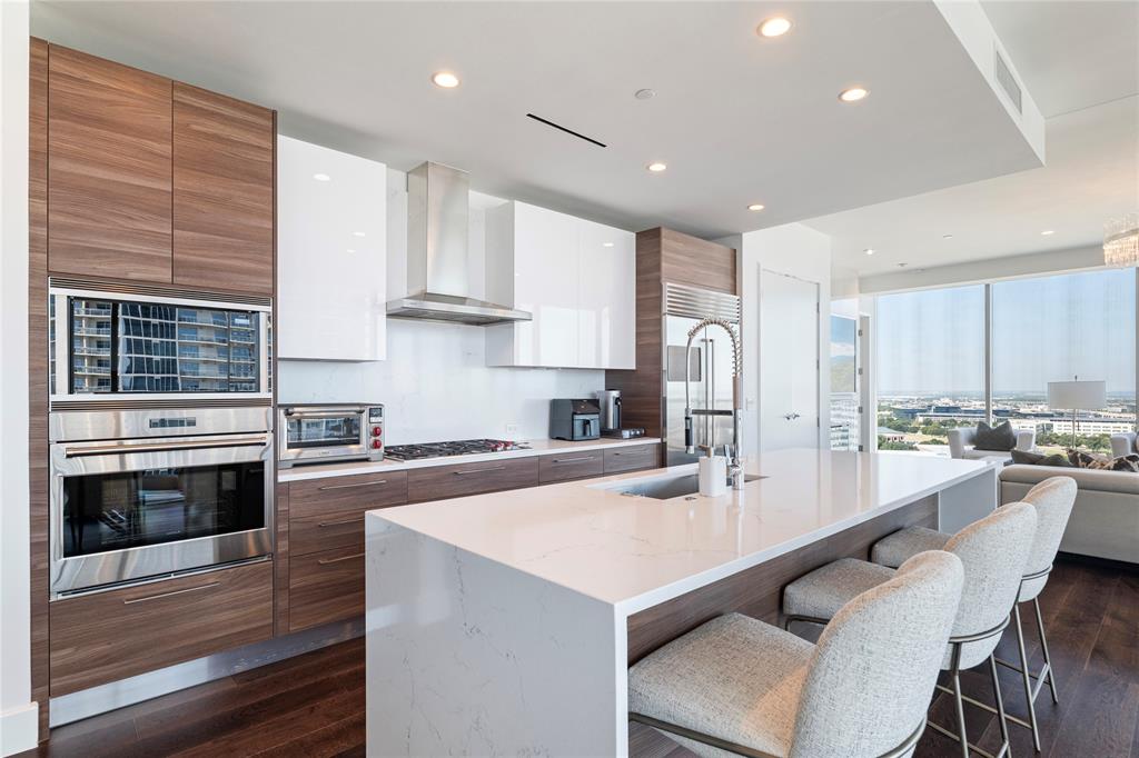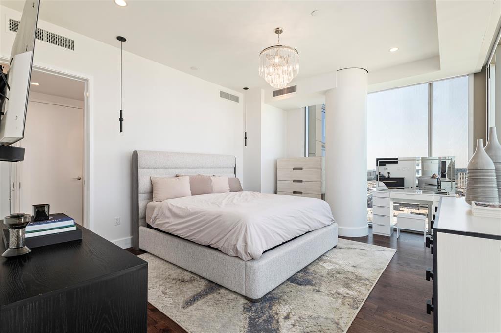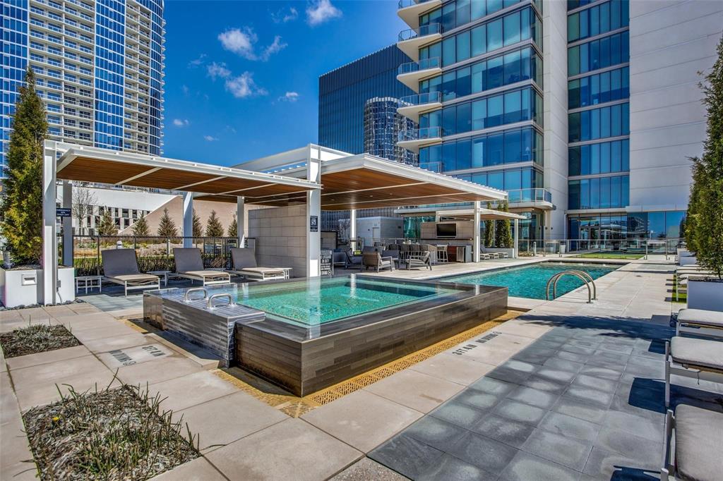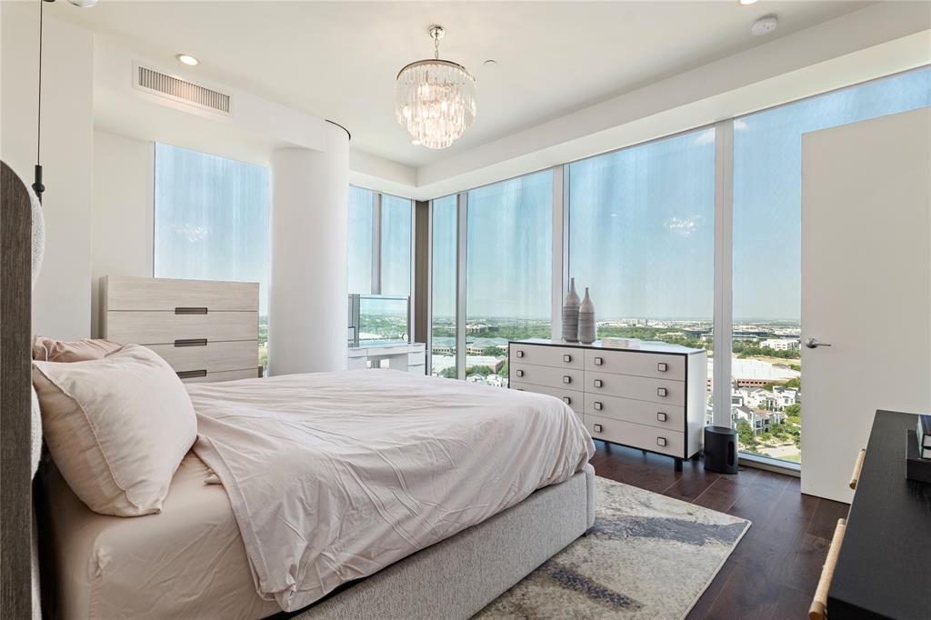 Experience the pinnacle of luxury high-rise living at Windrose Tower, an architectural icon in the heart of Legacy West. This impeccably designed residence offers a seamless blend of modern sophistication and timeless elegance, with panoramic floor-to-ceiling windows framing sweeping city and sunset views. The open-concept layout is ideal for both grand-scale entertaining and everyday comfort, anchored by a chef’s kitchen with a bold quartzite waterfall island, Wolf and Sub-Zero appliances, custom cabinetry, and a natural gas range all with stunning views from the 17th floor. The living and dining spaces extend effortlessly to a private balcony with a gas fireplace, an inviting retreat for enjoying golden-hour light or endless views day or night. The primary suite is a serene sanctuary, featuring a spa-inspired bath with a deep soaking tub, oversized walk-in shower, dual vanities, and an oversized custom closet. Additional bedrooms offer en-suite marble baths and generous closet space, providing comfort and privacy for guests. Designer-selected finishes, hardwood floors, high ceilings, smart home integration, and curated lighting elevate every detail of the home. Two reserved garage parking spaces and a dedicated storage unit offer convenience and peace of mind. Residents enjoy an unparalleled amenity package: 24-hour concierge and valet, resort-style saltwater pool with cabanas, state-of-the-art fitness and wellness center, golf simulator, wine lounge, conference rooms, outdoor kitchens, landscaped terraces, and pet spa. The Windrose also offers two guest suites for visitors! Just steps away, indulge in the vibrant shopping, dining, and entertainment of Legacy West - North Texas’s premier lifestyle destination. Windrose Tower is more than a home; it’s an uncompromising statement of luxury, privacy, and sophistication that can be yours!