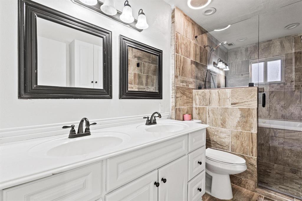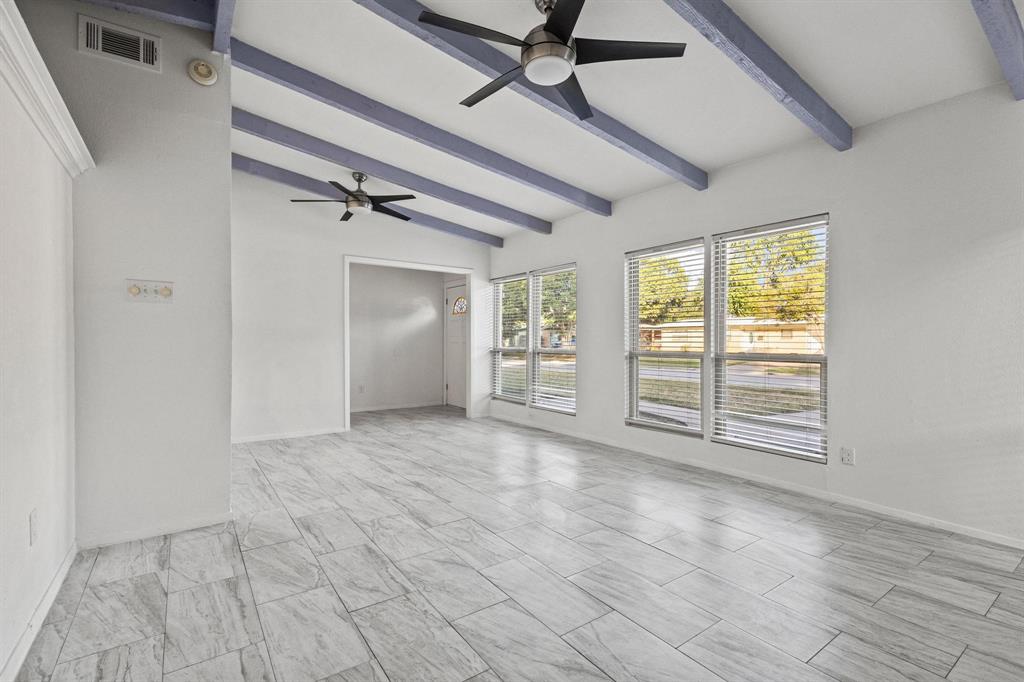 Step inside this beautifully updated single-story home featuring 4 bedrooms, 2 baths, 2 living areas and an inviting open layout perfect for both everyday living and entertaining. Plenty of Natural Light! The modern kitchen offers sleek finishes and plenty of storage of built-ins in both the secondary living and breakfast nook. Wood-like tile and hardwood throughout- NO CARPET. Perfect Starter Home or Investment Property with easy clean up. Primary suite is split from secondary bedrooms, provides a relaxing retreat. Spacious secondary bedrooms. Outside, enjoy a large backyard—ideal for gatherings, gardening, or simply unwinding. This home combines comfort, style, and space in one perfect package. Upgrades Include; Replaced Condenser & HVAC Air Handler in 2020 & 2021, Replaced ALL Cast Iron Plumbing with PVC in 2023, Replaced gas water heater in 2023, Installed LED lighting, oven, stove top, dishwasher, sink, disposal and quartz countertops and backsplash in 2000 and new washer & dryer, flooring and interior paint in 2025. MUST SEE!!!