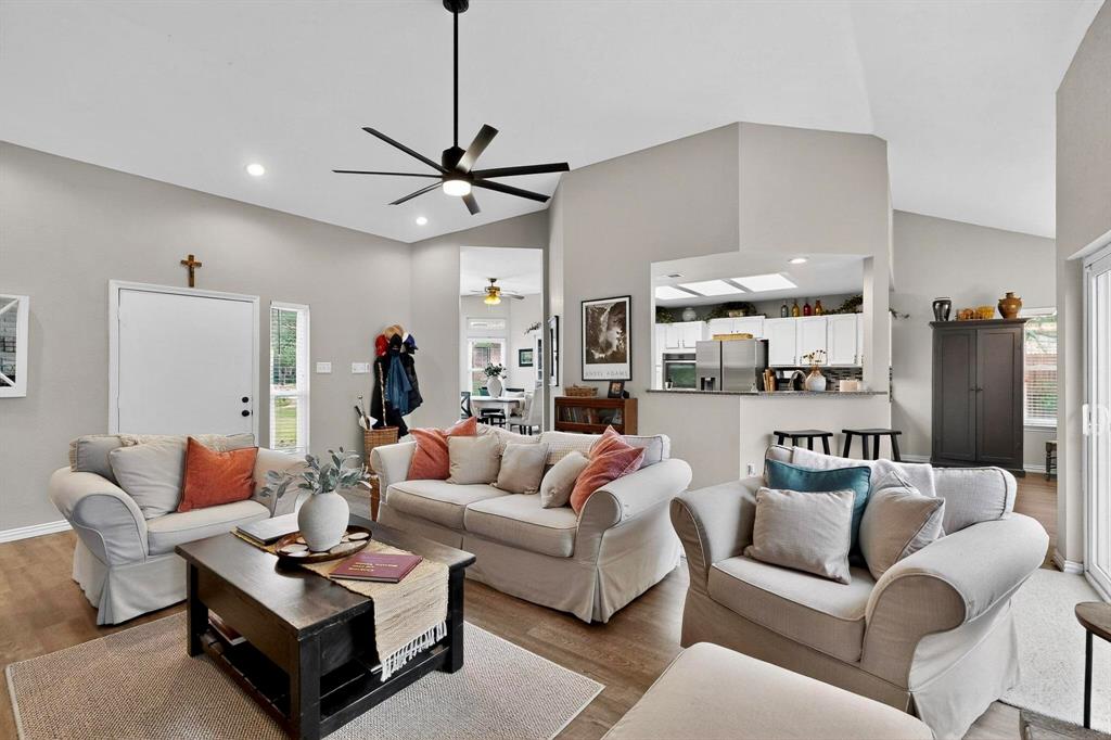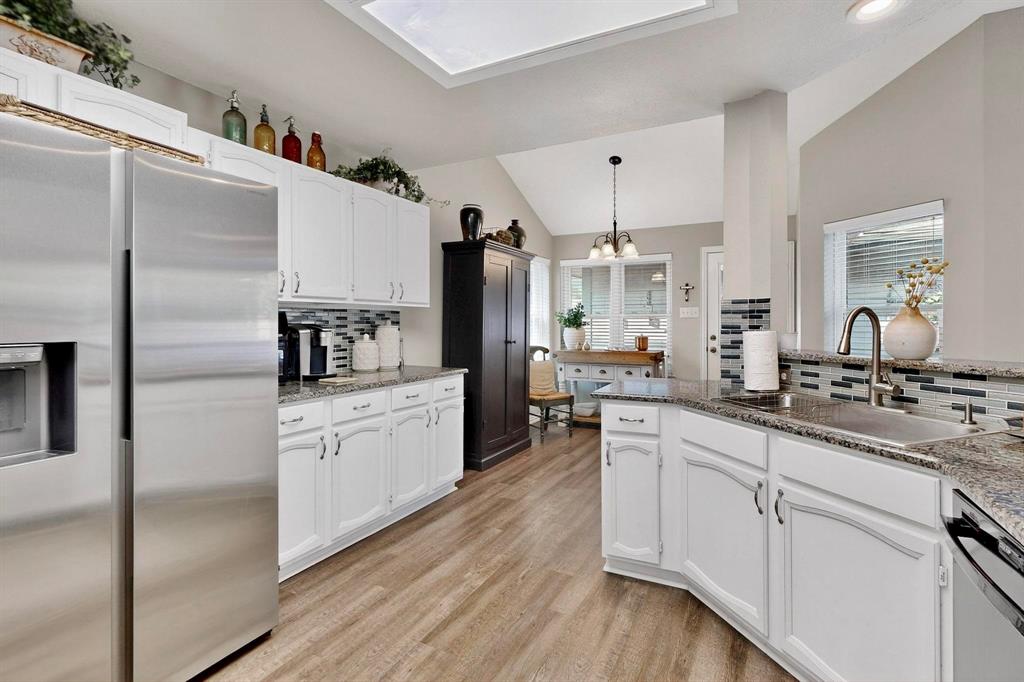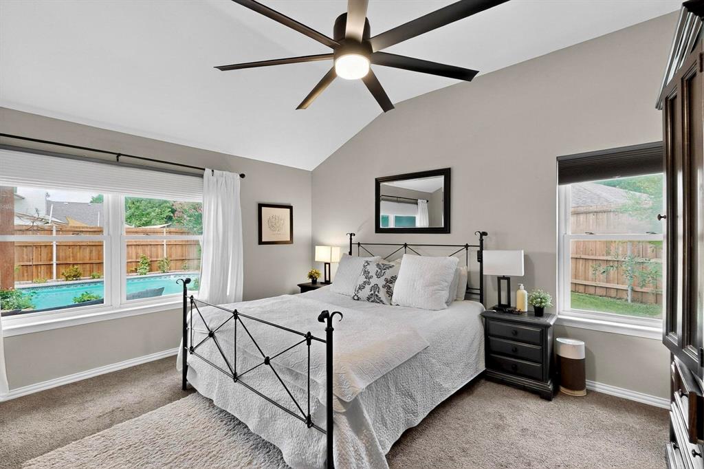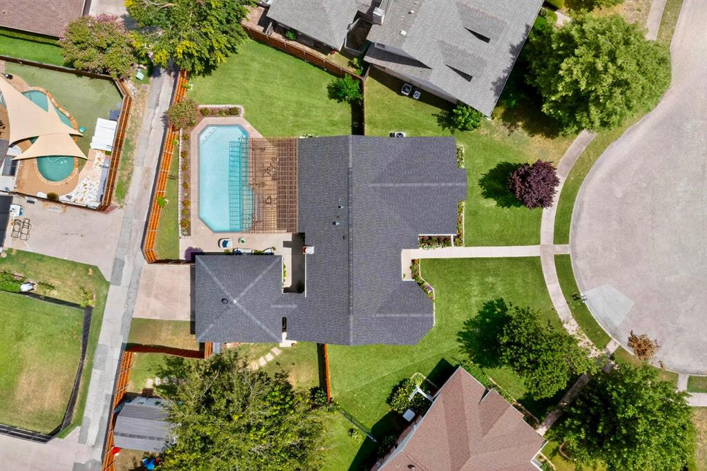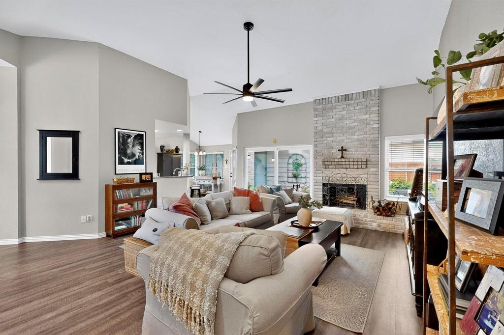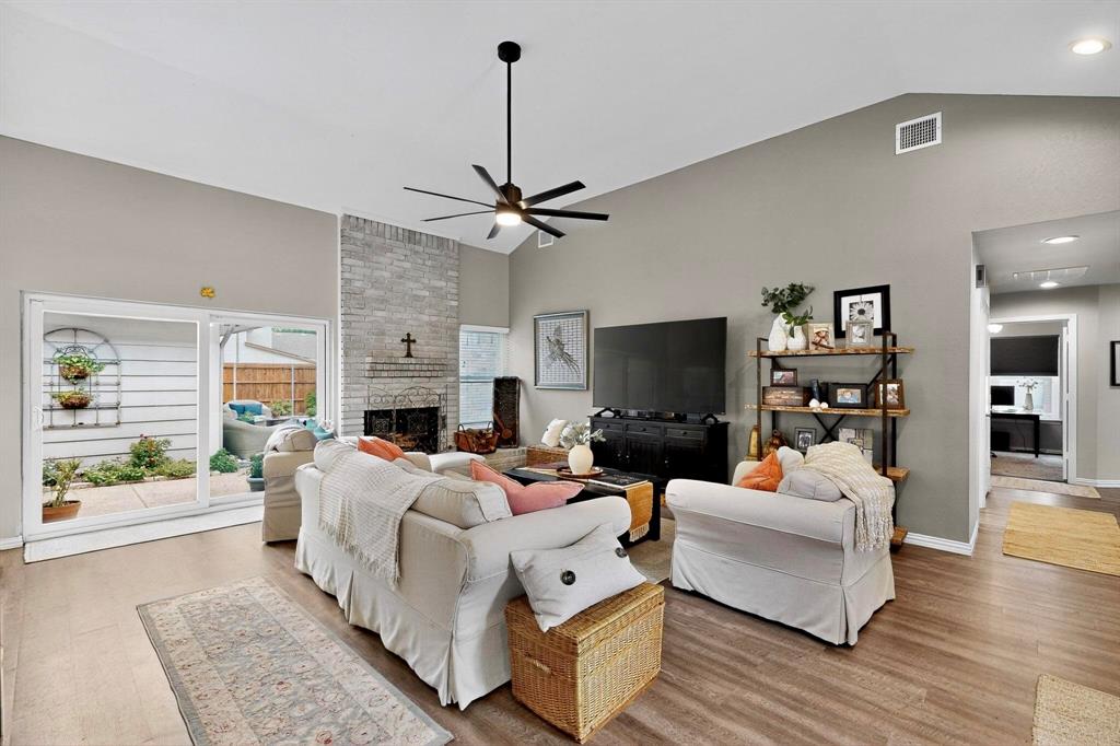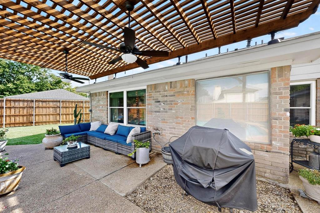 Nestled on nearly a quarter of an acre, this impressive property boasts amazing space inside and out—great curb appeal, stylish living spaces, sparkling pool & lush landscaping—perfect for relaxing & entertaining alike. PLUS a detached workshop with added storage, fully equipped with AC & electric! Stunningly updated & beautifully maintained with recent upgrades including a brand-new HVAC (2025), electrical components (2025), water heater (2024) & new lighting throughout. Step inside to a spacious layout with soaring ceilings & great natural light pouring in from every angle. Freshly repainted kitchen is equipped with a new sink + stove (late 2024) & double ovens, situated between the breakfast nook & formal dining room. Gas fireplace in living room also operates as wood-burning. The primary suite is a retreat with scenic backyard views & charming barn door entry to the ensuite complete with dual sinks, jetted tub & glass shower. Flexible office space & laundry room are both right off the primary. The sellers have created a private oasis in the backyard featuring a pergola by the pool with misting system & fans, Rainbird sprinkler system & recently replaced concrete pebble decking, enclosed by a newer wooden privacy fence (2024). Covered breezeway connects to the garage with attic storage & a second refrigerator that conveys. Fridge in kitchen, washer & dryer convey with STRONG offer. With beautiful gardens, updated systems & so many versatile spaces, don’t miss this truly move-in ready home in a great location near parks, greenbelts & top-rated Mesquite ISD schools!