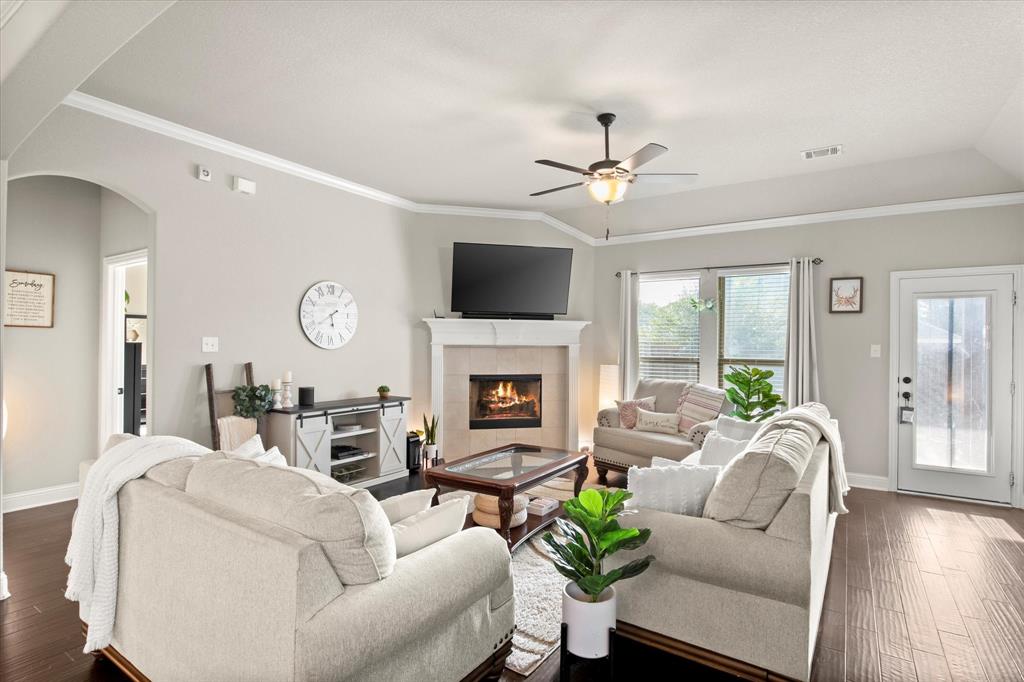 Welcome to this beautifully maintained 3-bedroom, 2-bath home in the sought-after Settlers Glen community. Built in 2017, this single-story residence offers 1,773 sq. ft. of thoughtfully designed living space with a warm, inviting feel. Step inside to find a spacious open-concept layout with abundant natural light, a cozy fireplace, and elegant finishes. The kitchen features modern appliances, ample cabinetry, and a breakfast bar, seamlessly connecting to the dining and living areas—perfect for entertaining or family gatherings. The primary suite is a peaceful retreat with a well-appointed en-suite bath. Two additional bedrooms and a full bath provide plenty of space for family, guests, or a home office. Enjoy the outdoors on your covered patio overlooking a well-kept yard, and a garage that faces the front for easy access. All furnishings, appliances, and even the dishes can stay, ask for those details