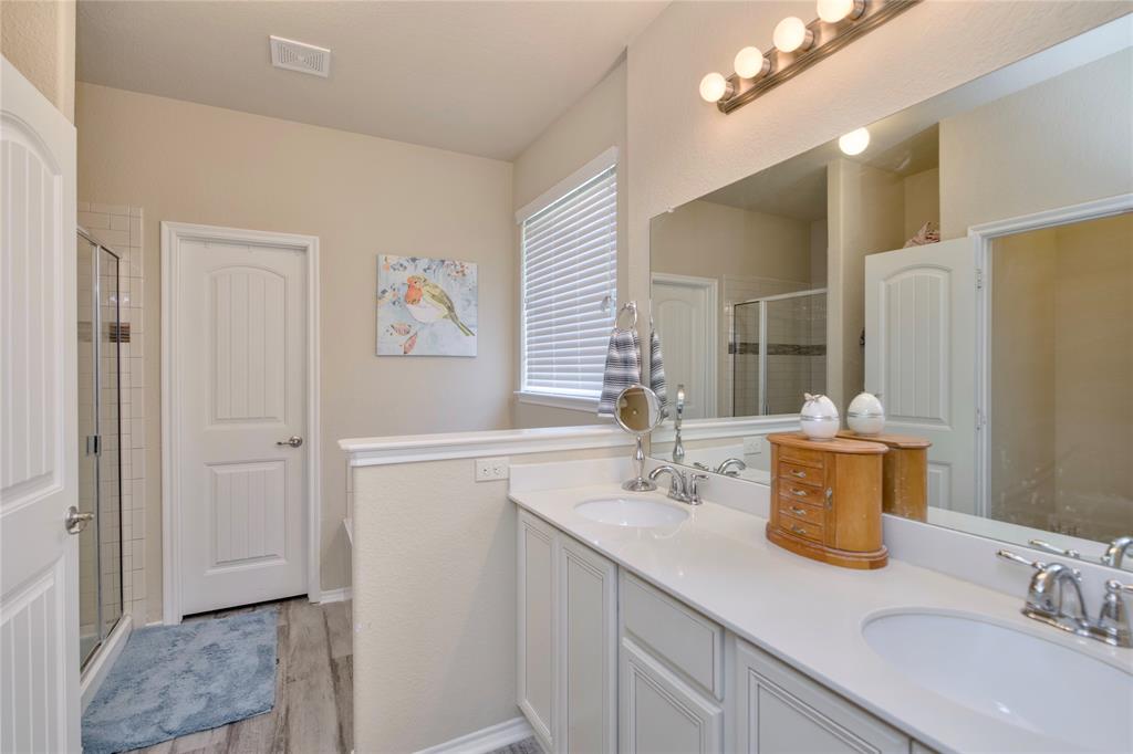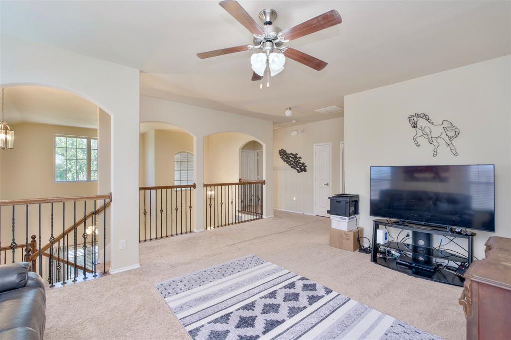 Upstairs, you’ll find a spacious loft area, media room, two additional bedrooms, and a third full bathroom, providing ample space for everyone , hobbies, or work-from-home setups. Out back, enjoy a covered porch and a fully fenced backyard, with open green space which is perfect for outdoor gatherings or relaxing in your private secluded space. New LVP Flooring downstairs, updated 2023 roof makes this home move in ready condition for its New Owners.