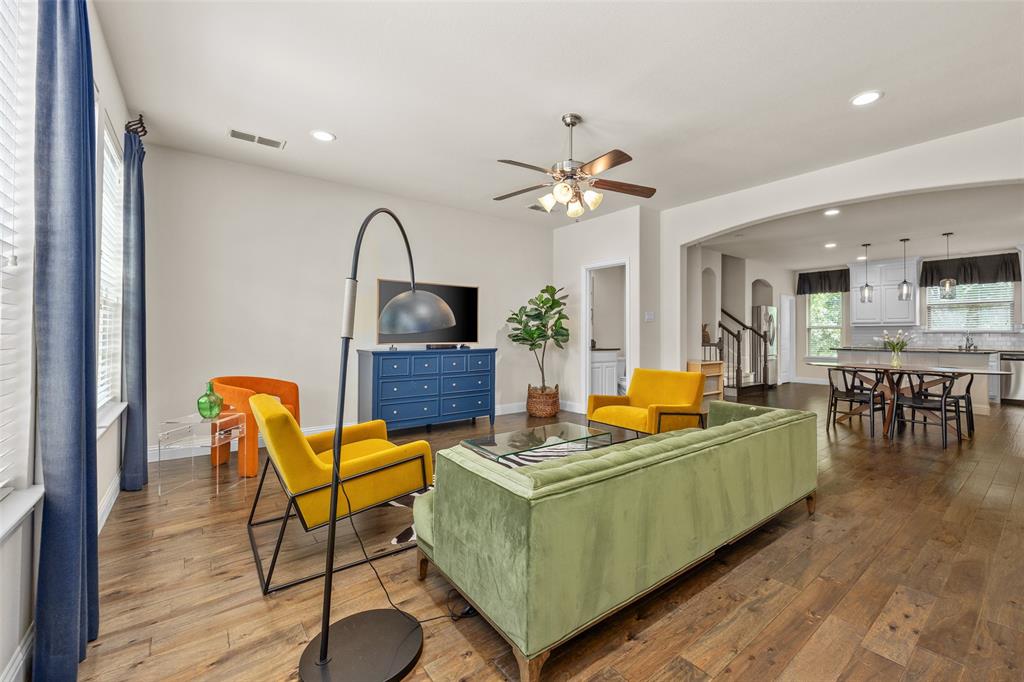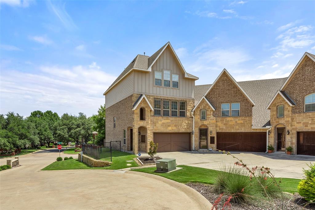 Experience refined living in this spacious and luxurious townhome, designed with both comfort and style in mind. This stunning residence is perfect for entertaining and everyday living. Enter through the two-car garage into a generous lower-level living space featuring a wet bar, two walk-in closets, and access to a covered patio, deck, and fenced backyard—ideal for hosting guests or enjoying quiet evenings outdoors. Upstairs, the bright, open-concept main level includes a stylish gourmet eat-in kitchen with granite countertops, stainless steel appliances, a gas cooktop, and custom white cabinetry with designer finishes. The oversized island flows into a spacious dining area and an inviting living room with a wall of windows and a cozy gas log fireplace. A huge walk-in pantry and nearby powder bath add both function and convenience. The expansive primary suite offers beautiful natural light, space for a sitting area, and a luxurious ensuite bath with double vanity sinks and new quartz counters, a soaking tub, separate shower, and a massive custom walk-in closet. Enjoy easy access to a nearby city park, miles of scenic trails for walking and biking, and the convenience of the Chisholm Trail Parkway, shopping, dining, and well-established neighborhoods with mature trees.