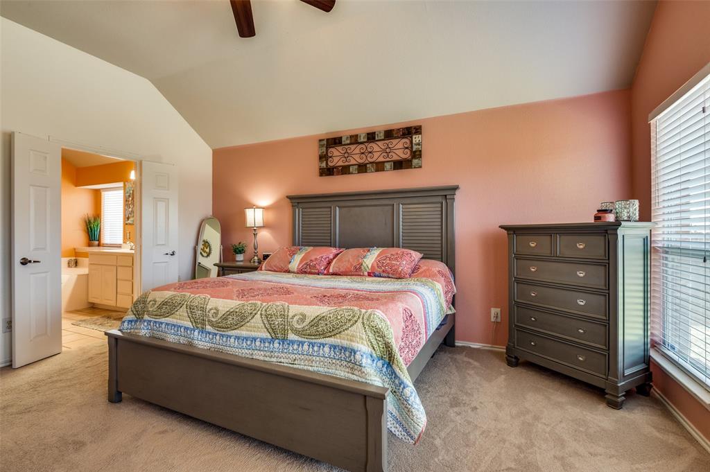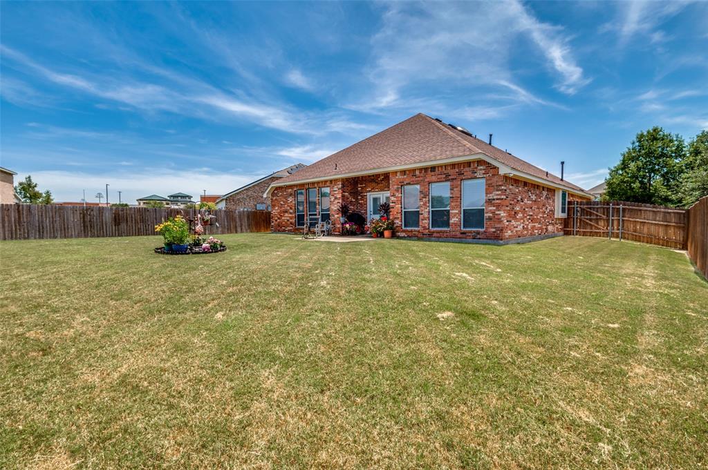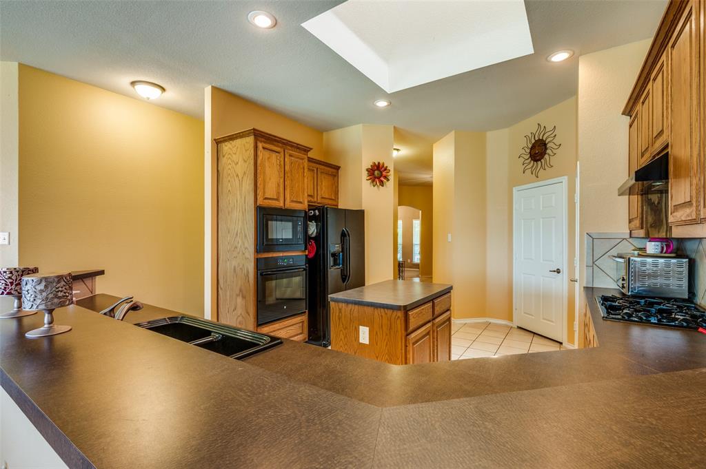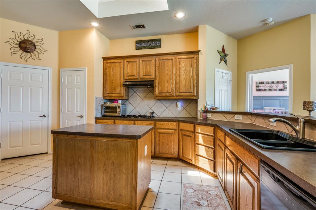 OPEN HOUSE SUNDAY 1 TO 4PM! HUGE PRICE REDUCTION! Welcome to this beautifully maintained home featuring a large brick front porch. As you enter you are greeted by a bright and cheerful interior filled with natural sunlight, there is an office or living area as you enter to the right. Interior features include an open concept, rounded archways, art niches, designer paint colors, tall ceilings, gas heat & multiple storage closets. The expansive layout features a large kitchen with ample cabinetry, a skylight for natural light, a center island, a gas cooktop & oven, built-in microwave, a wrap around breakfast bar & a walk-in pantry. The kitchen flows seamlessly into the dining & living area that includes a gas fireplace with ceramic logs. Retreat to the oversized primary suite that showcases large windows a generous walk-in closet & an ensuite bath boasting a relaxing soaking tub & separate shower & 2 sinks. French doors lead to the backyard that is incredibly generous in size, plenty of room to add a pool or enjoy the community pool and playground. The kitchen opens up to the breakfast area and the living room. The 2 secondary bedrooms are split from the master bedroom, are a good size & include ceiling fans. The hall bath includes a long countertop accented by white cabinets. There is a bright & cheery laundry room with built-in cabinets & a security system. The HVAC, water heater & roof were all replaced in 2023. Come check out this amazing home! Agents there are no showing restrictions! Show and sell today! There is an alarm present.