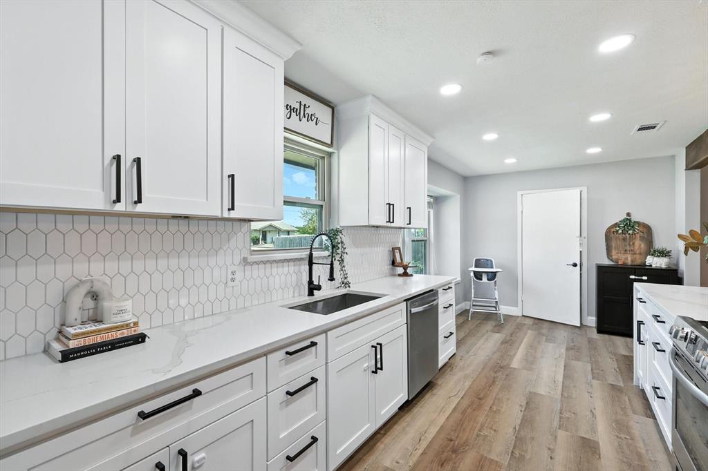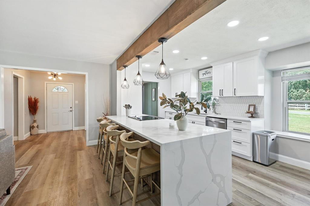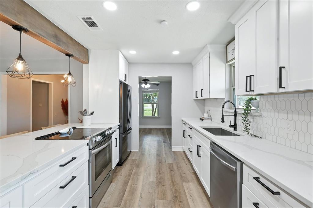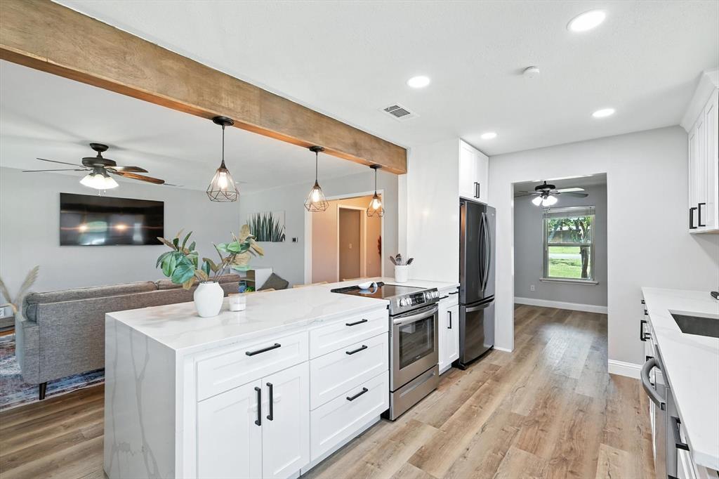 If you’ve been searching for a home that blends stylish renovations, outdoor adventure, and peaceful living, this is it. Located in a quiet, no-HOA neighborhood and zoned to a top-rated school district, this beautifully updated 3-bedroom, 2-bath home sits on a generous 0.4-acre lot just minutes from Lake Grapevine, scenic trails, and local parks. From the moment you step inside, you’ll appreciate the open layout and thoughtful upgrades that make this home move-in ready. The remodeled kitchen, completed in 2022, features modern finishes that flow seamlessly into the dining and living areas, creating the perfect space for everyday living and entertaining. The primary bathroom was also renovated in 2022 and now boasts a spacious walk-in shower. Additional updates include a new roof and gutters in 2021, energy-efficient windows and sliding door in 2021, and a complete HVAC and ductwork replacement in 2020. Durable laminate and tile flooring run throughout the main living areas, and the septic system has been recently cleaned and pumped in 2025. New water heater Aug. 2025.