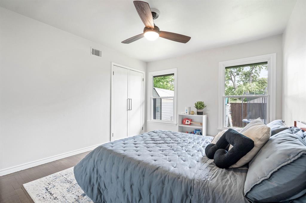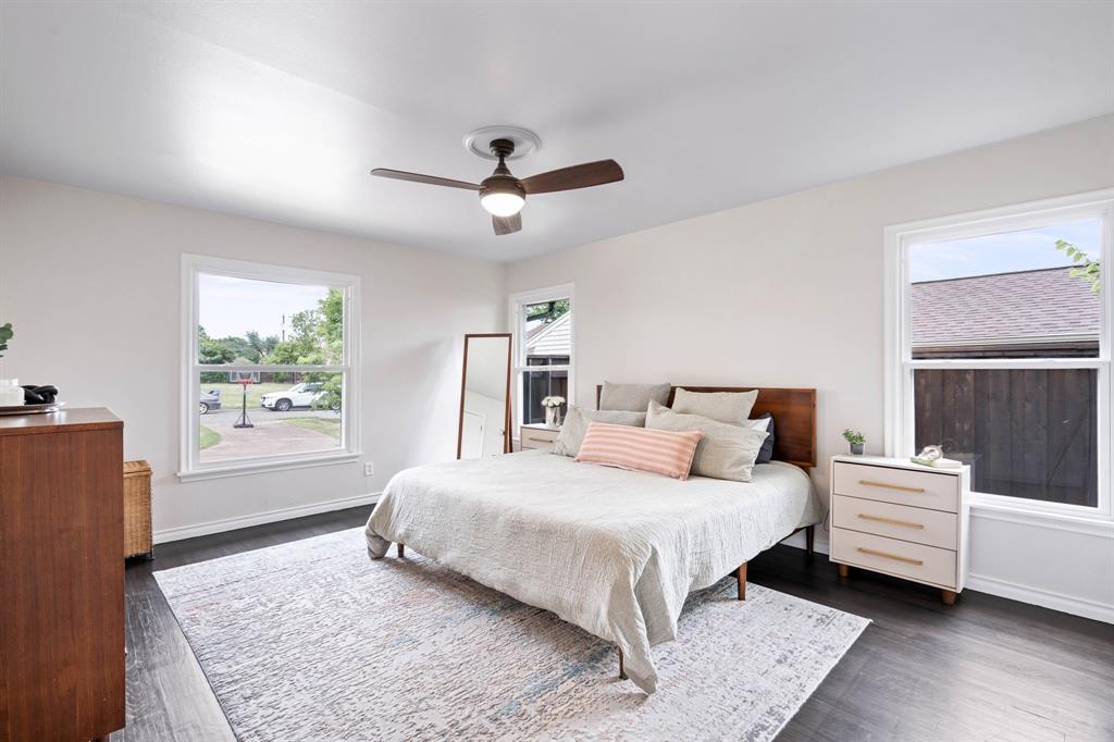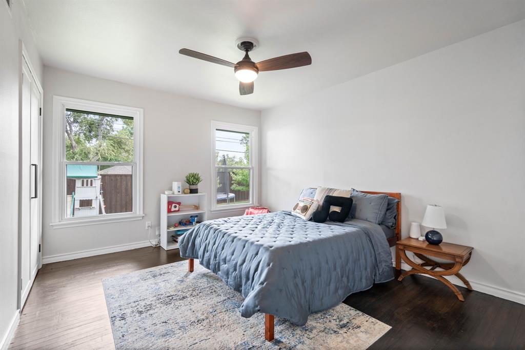 3-bedroom, 2-bath ranch-style home nestled in the desirable Bradford Estates subdivision in Northwest Dallas. House features a charming front porch, wood flooring throughout, built-ins, a spacious interior with two living spaces, Elfa and Ikea custom closets, and a large backyard with additional living space with a heated & cooled studio-shed. Open eat-in kitchen with a large island, lots of storage, and quartz countertops. Dishwasher and gas range both installed earlier this year! Other recent updates this year include solid wood interior doors, interior paint, landscaping, and fence staining. Home has been incredibly well cared for with numerous additional updates made during ownership; roof (2020), attic insulation (2021), PEX plumbing (2020) and primary bathroom remodel (2021), just to name a few. Don’t miss this move-in-ready gem offering the perfect blend of updates, space, and location - convenient to major highways, retail shopping and dining.