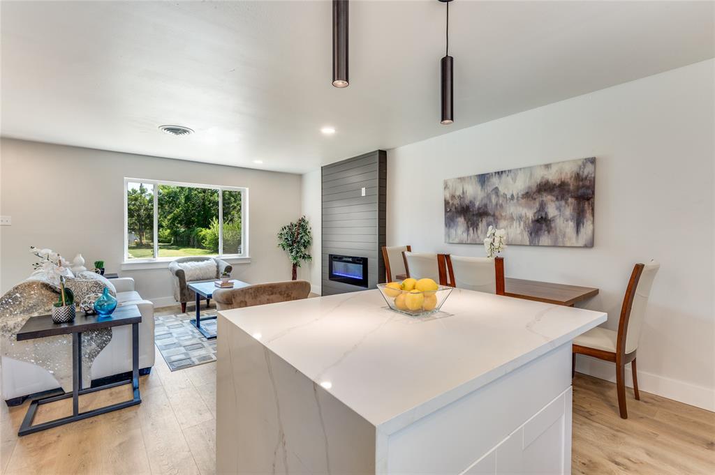 Step inside to find a designer-inspired open floor plan that exudes character and charm. The spacious kitchen boasts brand new quartz countertops, sleek cabinets, and an inviting island perfect for entertaining. The elegant honey oak flooring flows seamlessly through the living areas, complemented by recessed lighting that enhances the ambiance.
