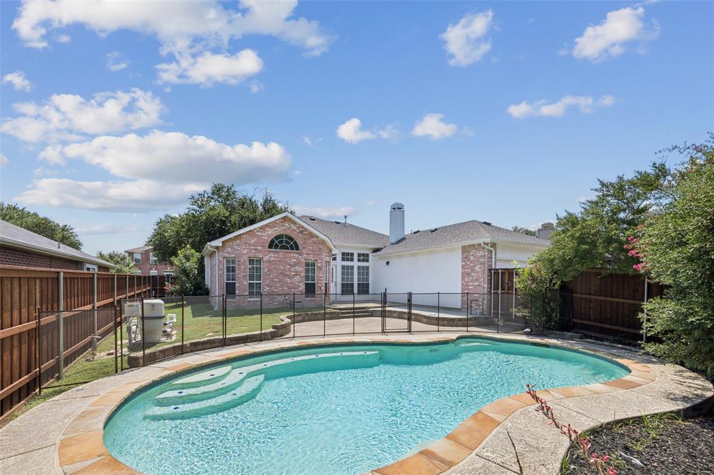 1537 Hickory Trail in Allen Texas is a rare find near by celebration park and shopping! This home is move-in ready 3-bed, 2-bath offers 1,753 sq ft of single-story comfort with a bright, open layout and wood floors installed in 2023. This stunning kitchen features granite counters, gas range, custom cabinetry, and updated pendant lighting. Living and dining areas flow seamlessly, accented by custom blinds, updated ceiling fans and a cozy fireplace. Both bathrooms were fully remodeled in 2023, and the spacious primary suite features dual sinks, and walk-in shower. Extensive upgrades bring peace of mind, a total HVAC replacement (2022), hot water heater (2023), attic insulation (2023), remodeled HVAC closet (2023), plus new garage and backyard doors (2025). Exterior updates include a new 6-ft fence (2023), siding & chimney upgrades (2023), repainted front door (2025), and recaulking of windows (2023). Step outside to your private retreat with pool, new pump (2023), and added safety fence (2025). Minutes from Celebration Park, Allen ISD schools, shopping, and Hwy 75 access. What’s not to love? Let’s make this house your home!