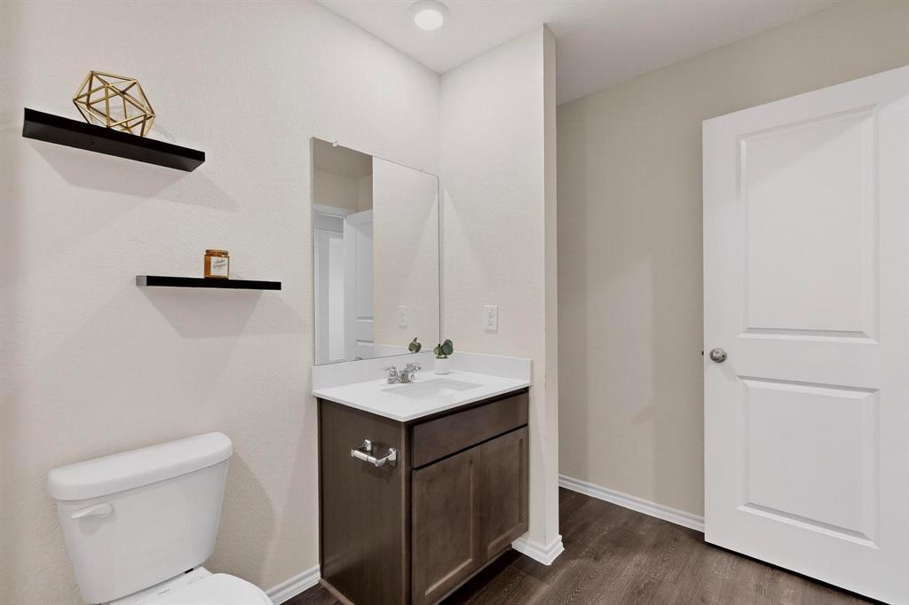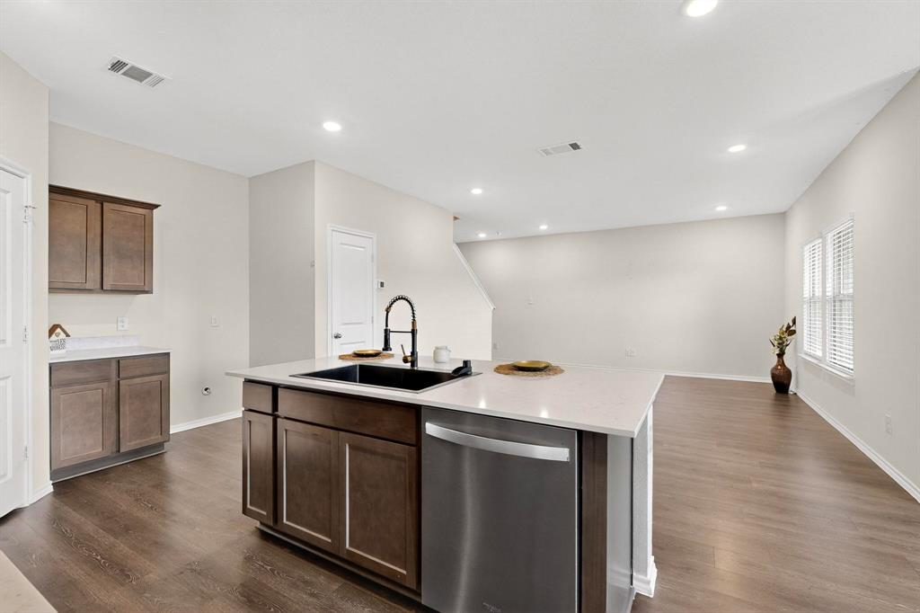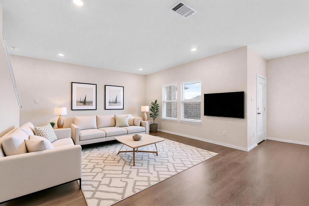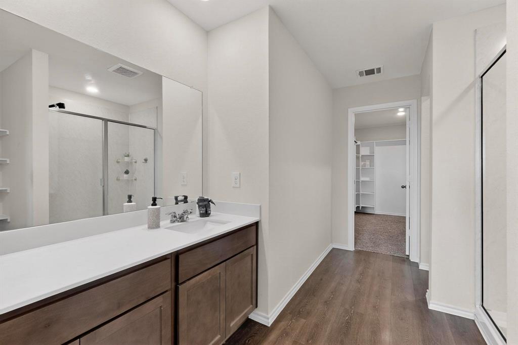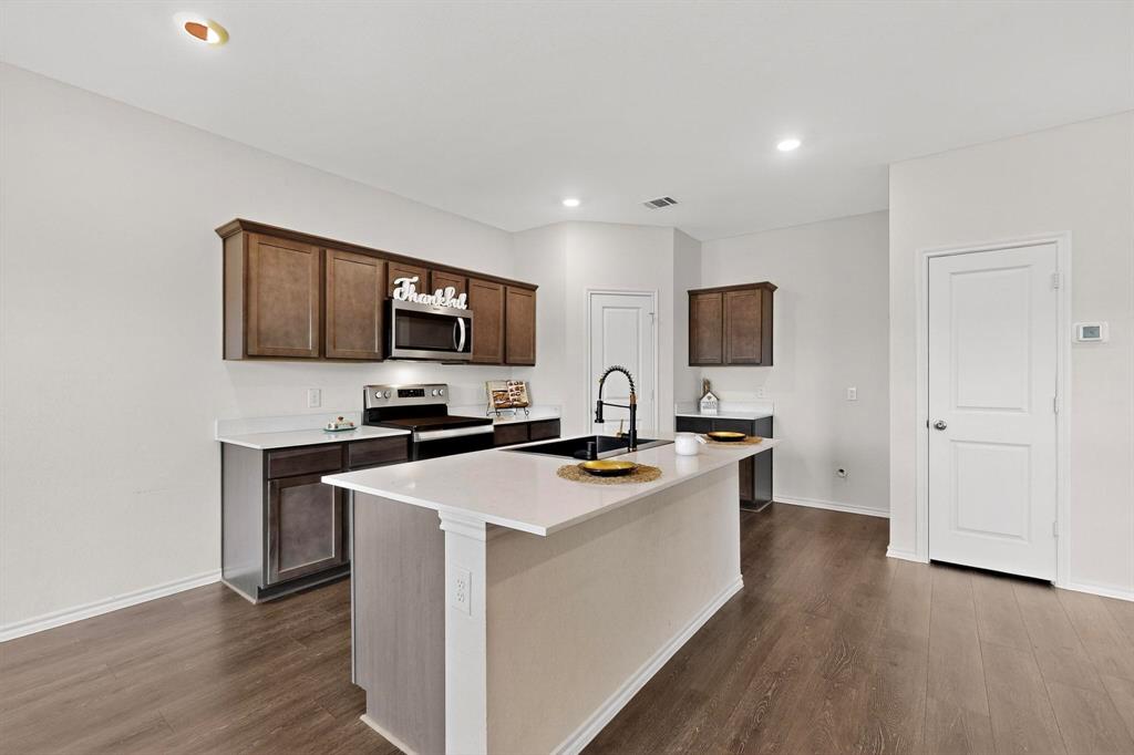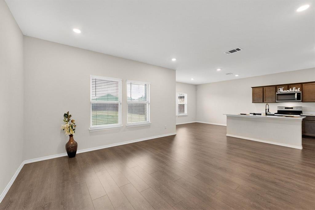 This exquisite move-in-ready gem is available now! Nestled in the coveted cul-de-sac of Wildcat Ranch, this lovingly maintained residence harmoniously blends comfort and style, creating an inviting sanctuary for you and your family. As you enter the foyer, you will be enveloped by the warmth and charm of this home, making it the perfect setting to greet your guests. The open-concept layout fosters a sense of connection, instantly putting everyone at ease. Elegant wood flooring flows gracefully through the hallway, kitchen, and main living areas, combining sophistication with effortless maintenance. The kitchen—truly the heart of this home—boasts stunning quartz countertops, nice cabinetry, and a breakfast bar that invites casual meals and vibrant conversations with loved ones. Retreat to the expansive primary suite—featuring a large walk-in shower and a roomy closet. Three additional bedrooms provide coziness, perfect for children or cherished guests. Step outside to discover your own extended covered patio—an enchanting space for delightful weekend cookouts or a peaceful escape in the shade. The backyard offers ample space for play, gardening, or simply enjoying the beauty of nature, while the vibrant community enriches your lifestyle with trails, a sparkling pool, a fitness center, and even a dog park for your furry companions to frolic. Discover the magic for yourself—schedule your private tour today and step into the home of your dreams!