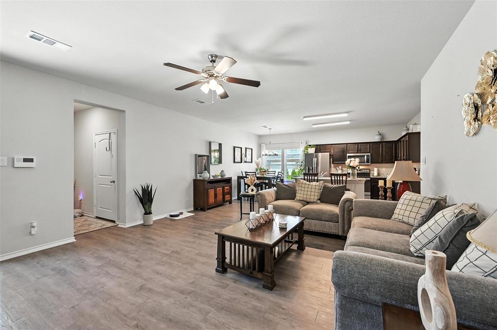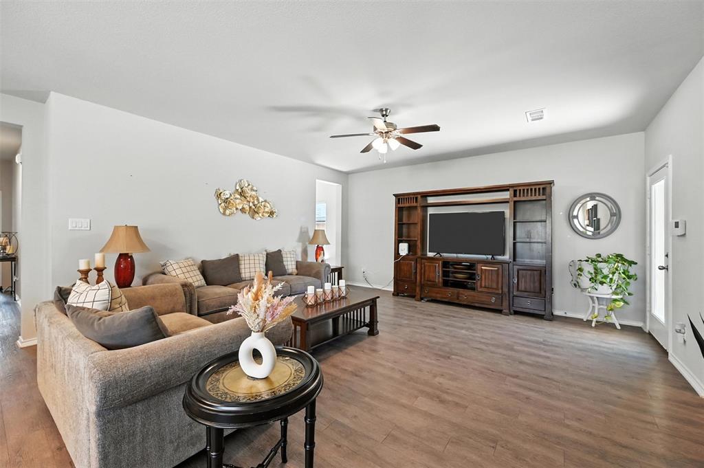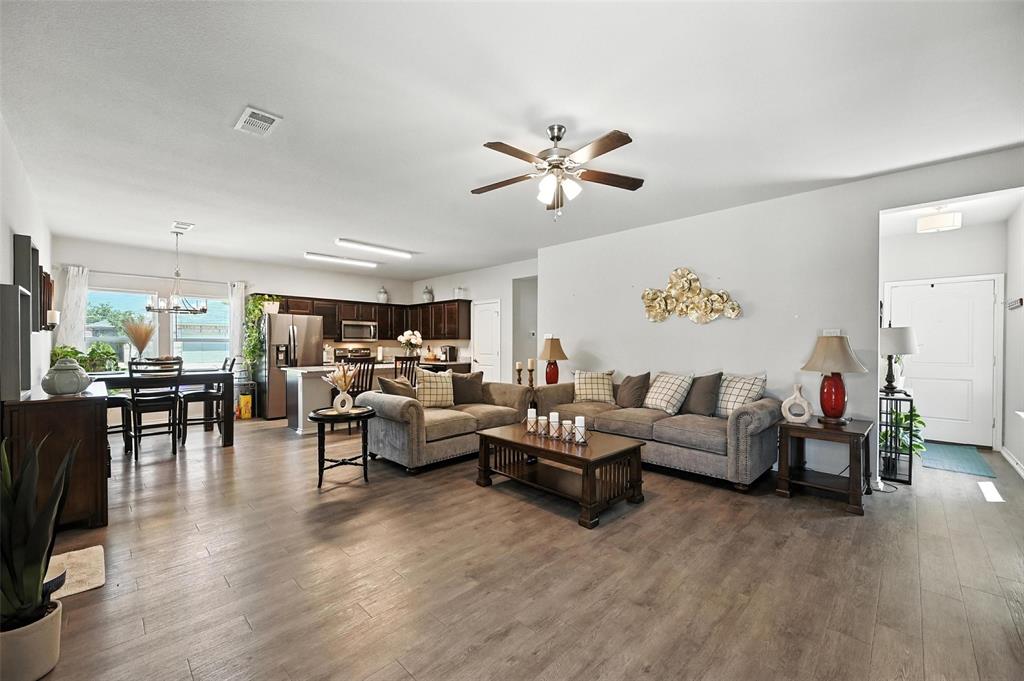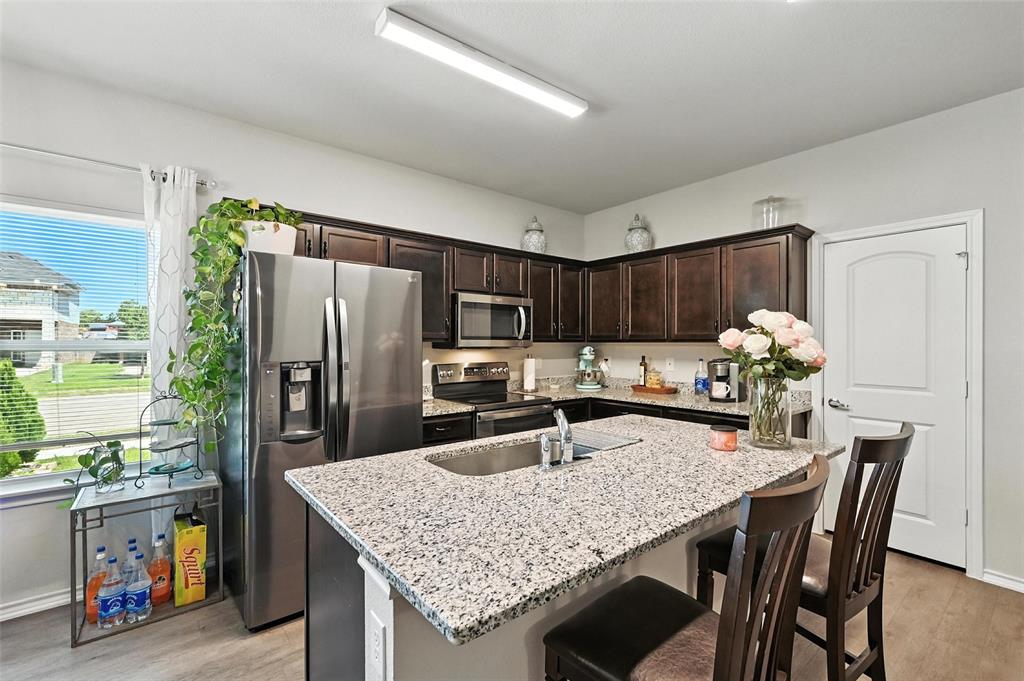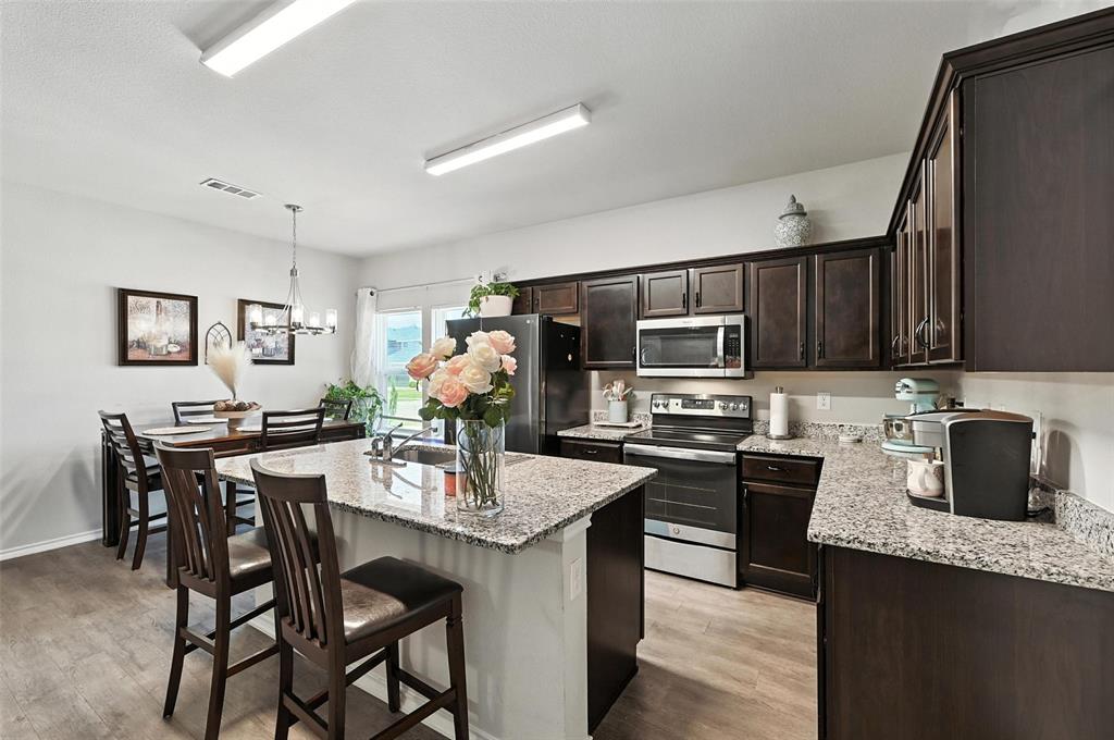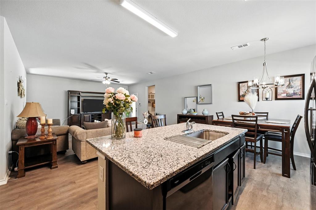 Welcome to this well-maintained 3-bedroom, 2-bath home with 1,693 sq ft of open living space. Built in 2020, this home features an inviting open concept layout with a spacious living room, dining area, and a modern kitchen with granite countertops, stainless steel appliances, and a center island with bar seating. Bedrooms are generously sized, and both bathrooms offer granite vanities. Vinyl wood flooring throughout the home, a 2-car garage, and the freedom of no HOA. Located minutes from Epic Waters Indoor Waterpark, shopping, and dining.