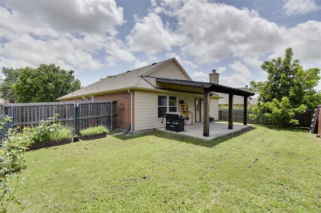 Flexible floor plan and perfectly located! 127 Coyote Run is a thoughtfully designed 3 bedroom, 2 bath home with a flex room, offering a smart open concept layout in an established neighborhood. The flex room is ideal for a home office, nursery, craft room, play area, or workout space giving you options to make it your own! The kitchen opens to the family room, creating a warm & connected atmosphere. Enjoy the outdoors from your awesome covered back porch. Fenced back yard perfect for kids or pets. Raised beds allow for your very own garden. Roof replaced July 2025. Within walking distance from the neighborhood pond, playground, and Howard Junior High. This home combines convenience with community!
