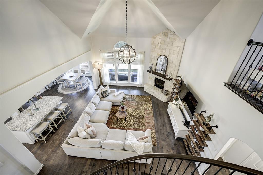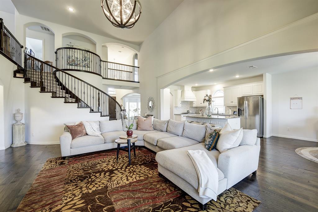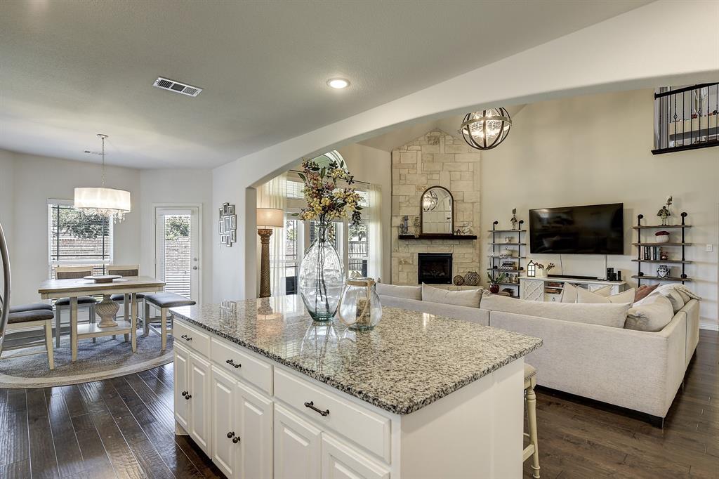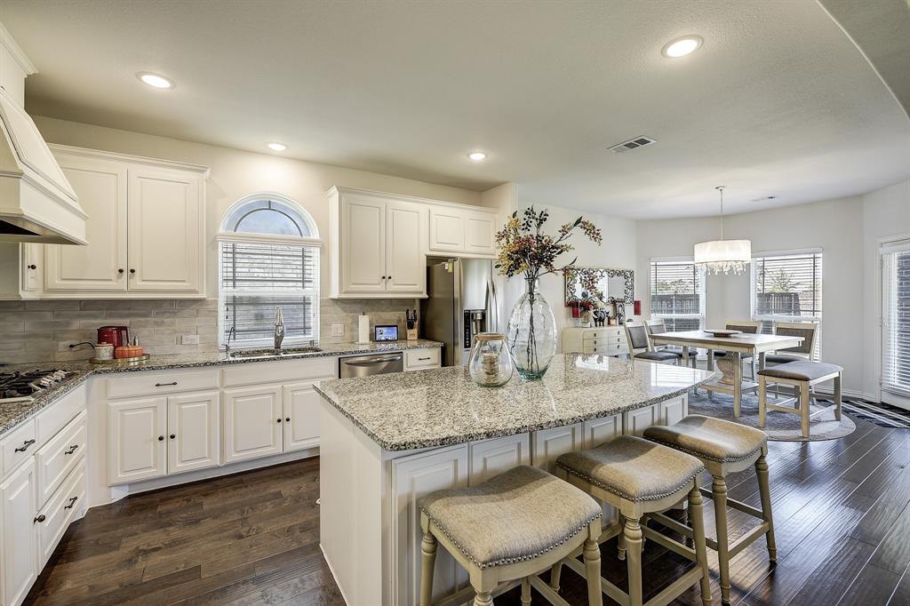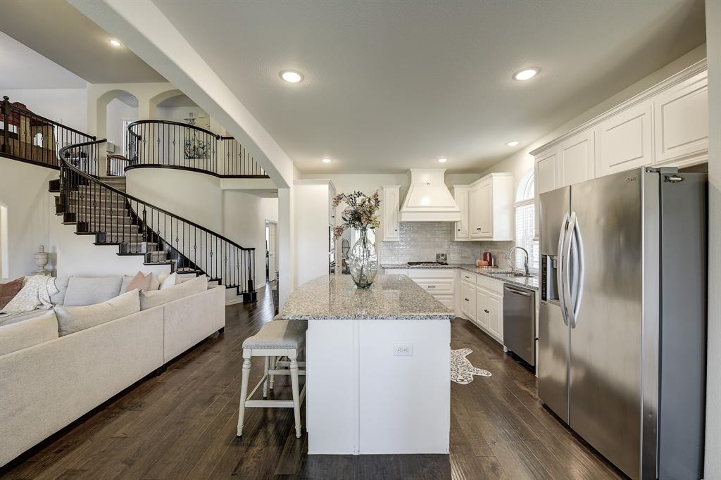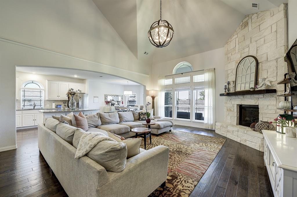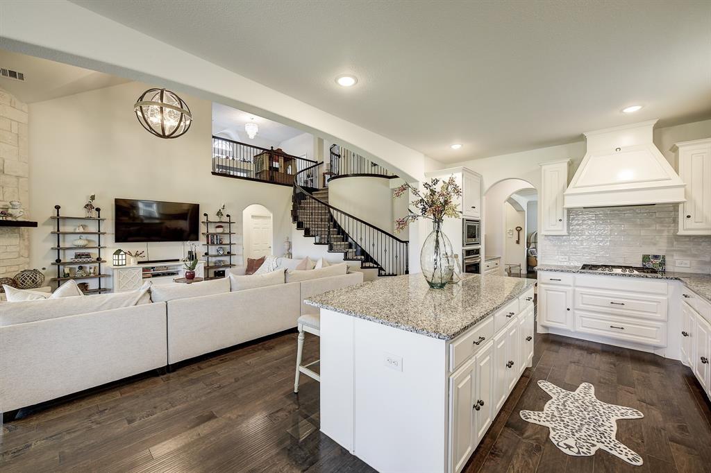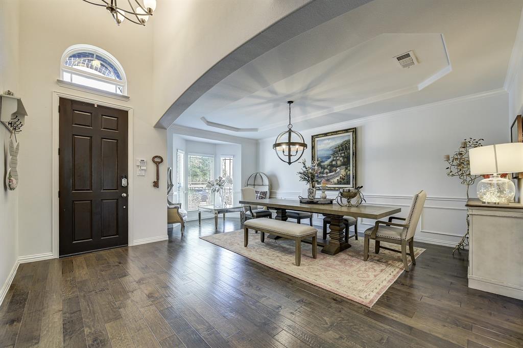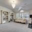 Upon entry, soaring cathedral ceilings and expansive windows fill the home with natural light, enhancing the bright and open layout. The heart of the residence is the gourmet kitchen, showcasing a large center island with quartz countertops, an eat-in dining area, and seamless flow into both formal and informal living spaces. Three distinct dining areas provide flexible options for hosting gatherings or enjoying quiet family meals.