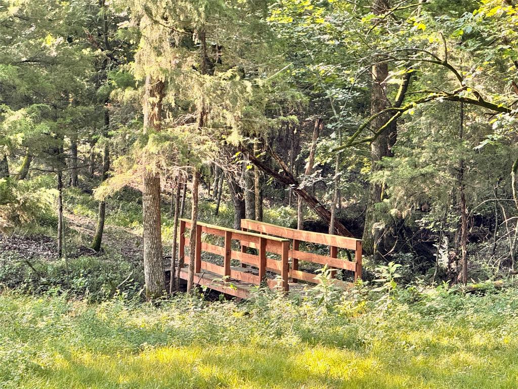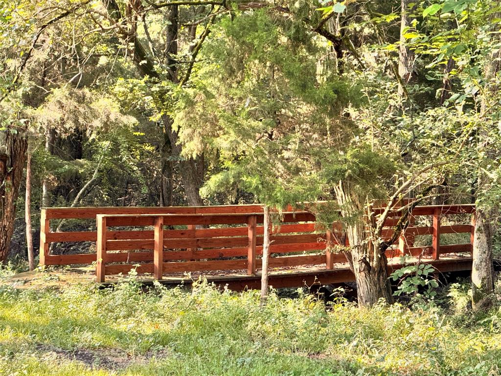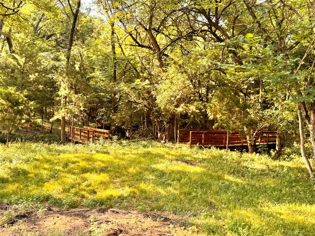 Well-maintained, attractive fencing frames the land, adding both charm and function. Picturesque wooden bridges cross dry creeks, creating a storybook setting for peaceful walks, quiet moments, or connecting different areas of the property with ease.