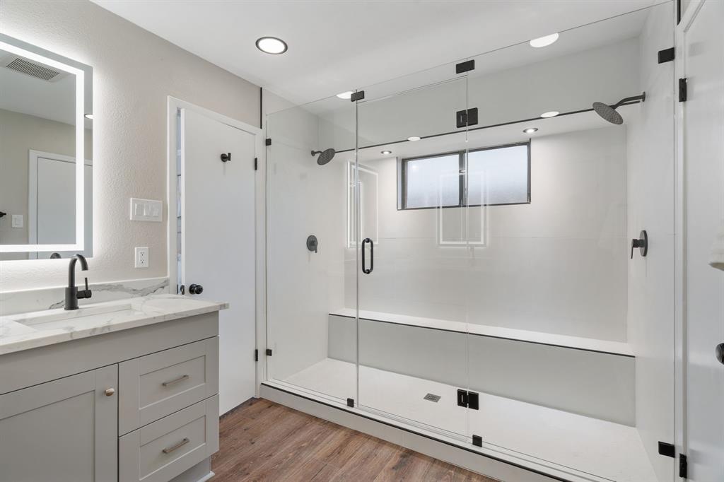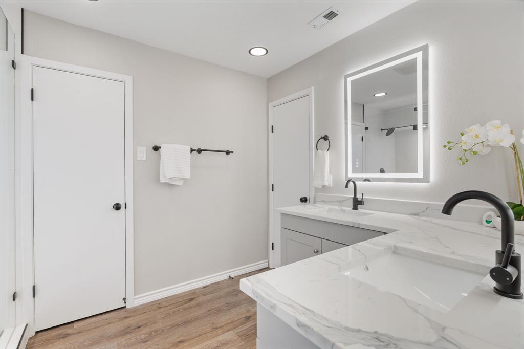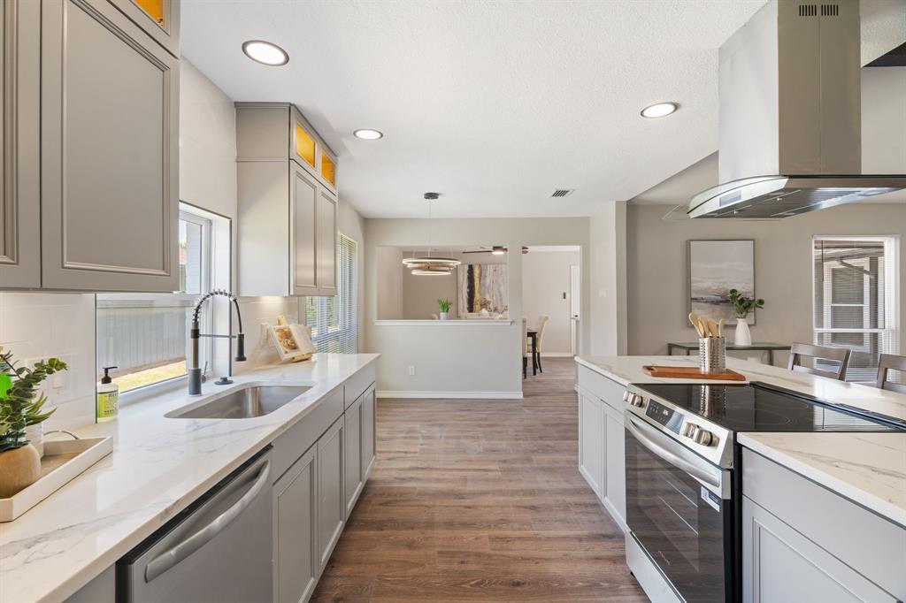 Upgrades include a brand new roof, new HVAC system with warranty, foundation repair with transferable warranty, fully updated kitchen and bathrooms with defog mirrors, all new flooring, windows, paint, and baseboards. Designer touches throughout with decorative light fixtures and dimmable lighting for the perfect ambiance.