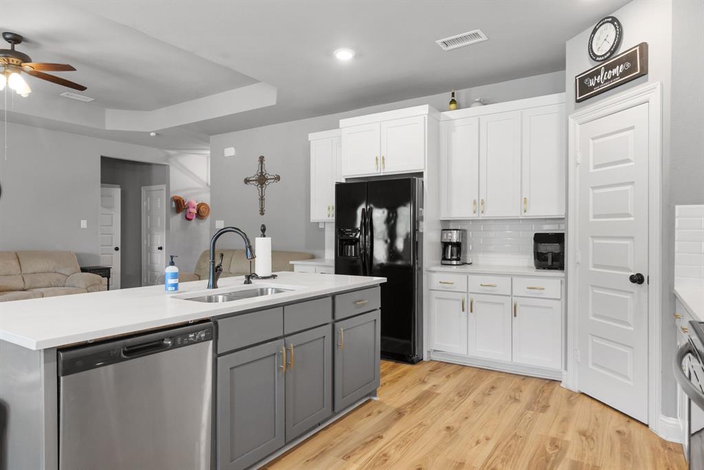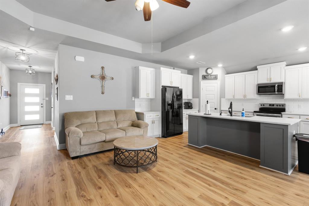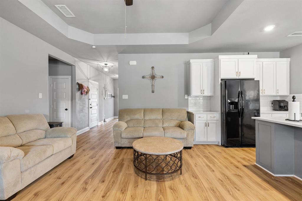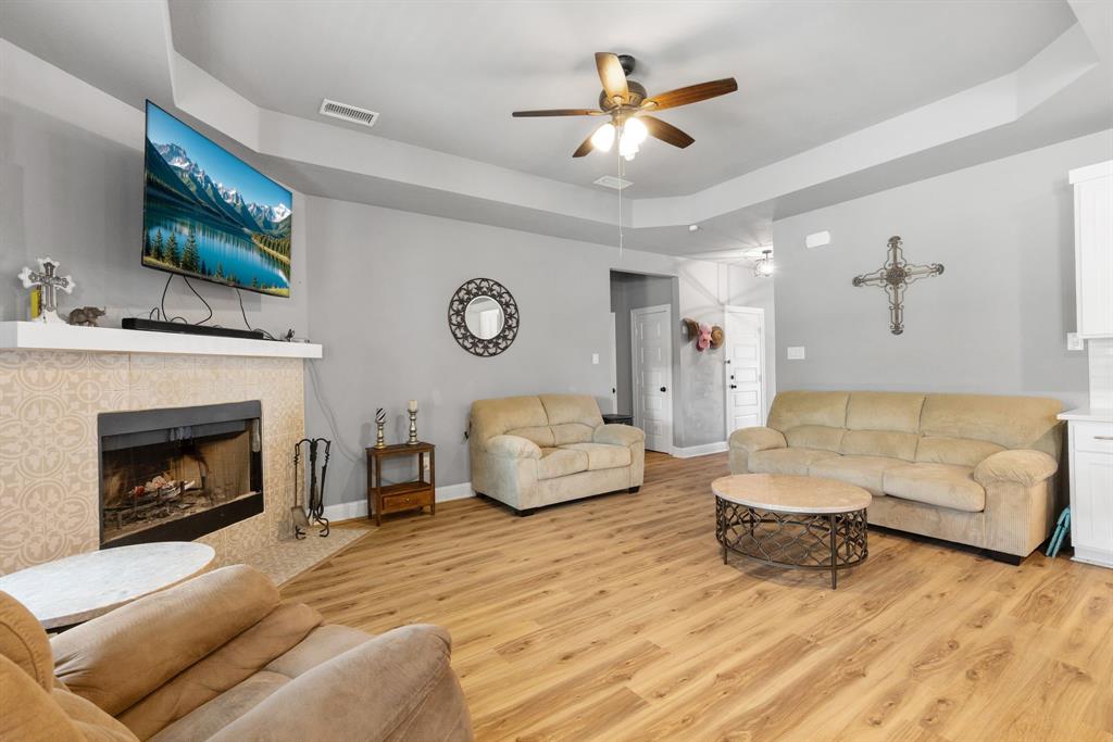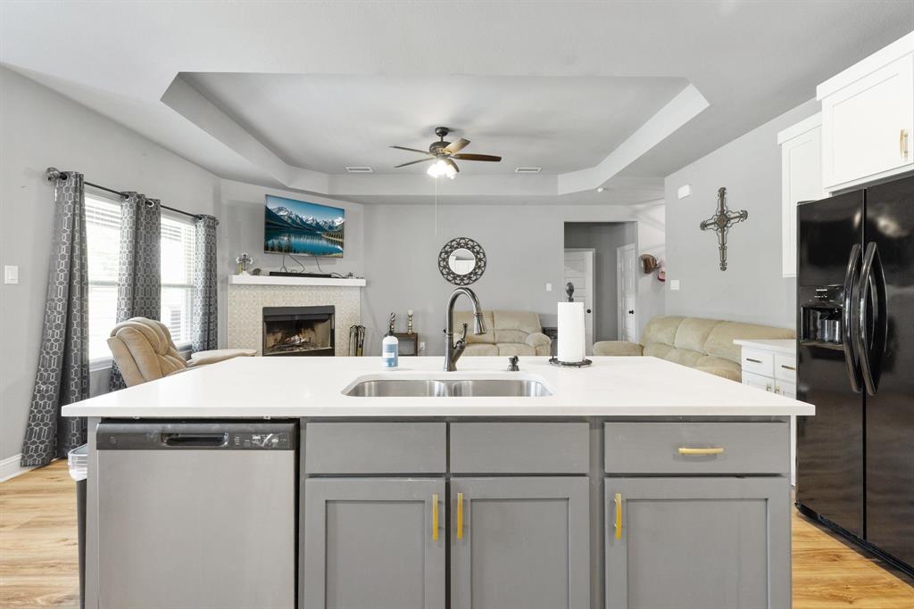 SELLER is offering $10,000 CONCESSIONS towards Buyer Closing. Welcome to your dream retreat nestled in the sought after Waters Edge neighborhood. This stunning property offers a perfect blend of comfort, style, and natural beauty, making it an ideal home for families, retirees, or anyone seeking a peaceful lifestyle. Situated in a tranquil neighborhood, this property boasts easy access to local amenities, schools, and recreational activities. Enjoy the charm of small-town living while being just a short drive from larger cities. Spanning close to 0.5 acres, this spacious lot provides ample outdoor space, and the HOA includes Private Gated Lake with access code Year Around Marina with Dock. Enjoy Lunches sitting over Lake on the Large Extended Boat Dock or Hangout on picnic tables or under Pergola! 9' Vaulted High Ceilings, 4 Full Rooms with Flex room to be used as Office-Bed-Hobby-Nursery, Split plan. Water Resistant Luxury Flooring, Tall Wood Cabinetry, Quartz Countertops with Gourmet Style Open Concept Kitchen Flow into Living, Upgraded Tiled Fireplace, and home features an open-concept layout that maximizes space and natural light. The inviting living room is perfect for family gatherings, while the modern kitchen perfect for entertaining guests. Solar screens have been added to help reduce energy costs by blocking out heat and UV rays.
