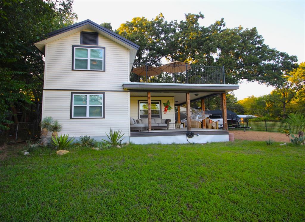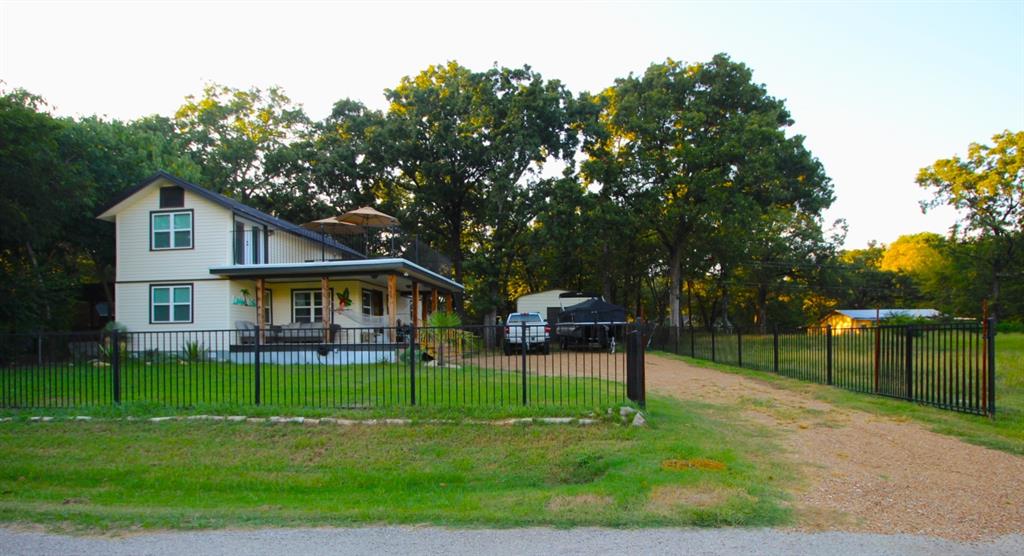 Discover your beautifully renovated Texas lake community retreat, with exclusive access to a subdivision boat ramp! Nestled in a tranquil lakeside neighborhood, just a short stroll from Cedar Creek Lake, this home perfectly balances serenity & convenience—ideal for weekend getaways, retirement, rental income, or year-round living. Check out the gated driveway leading to a spacious single-bay garage & workshop with separate storage shed, offering ample storage & parking for vehicles, boats, & RVs. Enjoy the expansive wrap-around covered porch & back deck, complete with relaxing hot tub. The generously sized & fully fenced yard features an inviting fire pit area, perfect for outdoor activities & relaxation.
