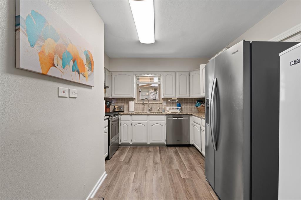 Beautifully Updated 3-Bedroom Home in Mesquite, TX. This charming and move-in ready 3-bedroom, 2-bath home in the heart of Mesquite offers 1,246 sq ft of thoughtfully updated living space—inside and out! Step inside to find fresh finishes, including Luxury Vinyl Plank, tile, and carpet flooring, creating a warm and stylish feel throughout. The updated kitchen features spacious cabinetry, granite countertops, and a modern layout perfect for everyday living and entertaining. Enjoy year-round energy savings with fully paid-off solar panels, and take advantage of the beautifully landscaped yard that offers plenty of outdoor space for relaxation and gatherings. The expansive covered patio area is ideal for entertaining, grilling, or unwinding in the shade. Additional highlights include 50 year impact resistant shingles, a storage shed with electricity, ideal for hobbies, tools, or extra workspace, plus many other thoughtful updates that make this home truly stand out. Conveniently located near schools, shopping, and major highways—this home offers both comfort and efficiency in a great location. Don’t miss this opportunity!