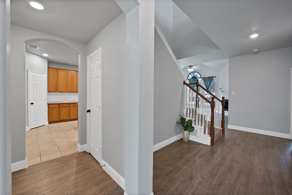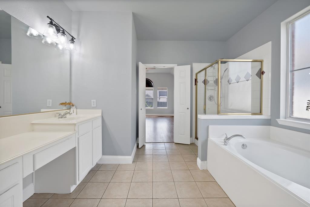 Spacious, Updated Home in Mansfield's coveted Tanglewood Neighborhood. Located in one of Mansfield's most sought after communities, this beautifully updated 4 bedroom, 3 bathroom home offers over 3000 square feet of versatile living space with a 3 car split garage and a thoughtfully designed split floor plan. Step inside to find brand new flooring throughout, fresh paint in every room, and a modern new backsplash in the kitchen and family room with vaulted ceilings, a cozy gas fireplace, center island, walk in pantry, and abundant counter with cabinet space, all with views of the backyard. The unique split layout places the spacious primary suite on one side of the main floor and a separate guest suite with full bath on the other, providing privacy for owners and visitors. The primary retreat includes dual vanities, a soaking tub, separate shower, and a large walk in closet. Formal living and dining areas plus a generous breakfast nook offer plenty of entertaining options. Upstairs, you'll find two additional bedrooms and a hug game room perfect for movie nights or teen hangouts. Recent updates include a brand new roof, downstairs HVAC replaced, and new paint, new flooring, and updated kitchen finishes. Enjoy summer evenings on the covered back patio or take advantage of Tanglewood's community pool, green spaces, picnic area, and gazebo. Conveniently located near HWY 287 and Cooper Street, with shopping, dining, and top rated Mansfield ISD schools just minutes away. This move-in ready home offers the space, updates, and neighborhood lifestyle you’ve been looking for!