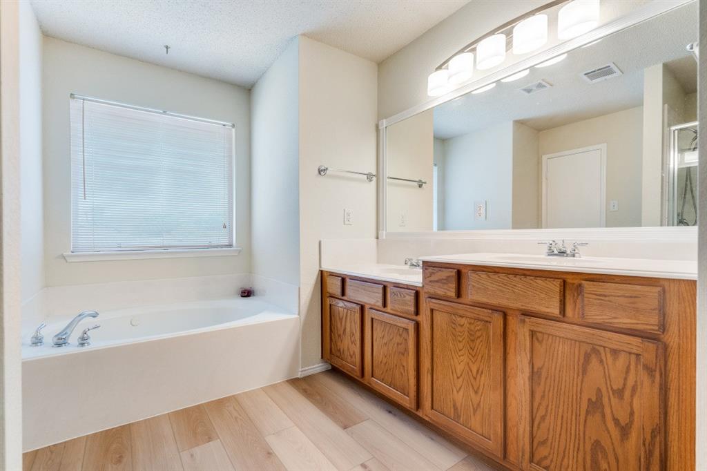 Beautifully updated North Facing 4-bedroom home on oversized lot is Move-in-ready. Welcome to this meticulously maintained, one-owner home featuring 4 spacious bedrooms , 2.5 bathrooms, and a 2-car garage—all situated on an oversized lot with a large backyard, perfect for outdoor living and entertaining. Step into the heart of the home: a generously sized kitchen equipped with sleek quartz countertops and brand-new stainless steel appliances, including a stove and dishwasher. Ideal for gatherings, the home offers two living areas—one with a cozy wood-burning and gas fireplace, and brand new LVP flooring—and a versatile living dining combo plus a bright eat-in kitchen. The private owner’s retreat features a luxurious en suite bath complete with dual vanities, a walk-in shower, and a garden tub with jets for ultimate relaxation. The three additional bedrooms are nicely sized and share a well-appointed bathroom. Roof just replaced and Both HVAC systems were recently replaced in 2023. Situated in the highly regarded Wylie ISD, this home is part of a lively community that boasts a range of amenities, including a pool, sports fields, pavilion, and playground. It’s also ideally located near city parks, a golf course, and the picturesque Oak Point Park & Nature Preserve. Plus, shopping and dining are just minutes away for added convenience. Home is in great condition and priced to sell. Refrigerator and washer dryer convey with home