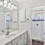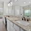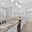 bathroom featuring a large walk-in shower and dual vanities. Upstairs, you'll find a large game room or lounge area,