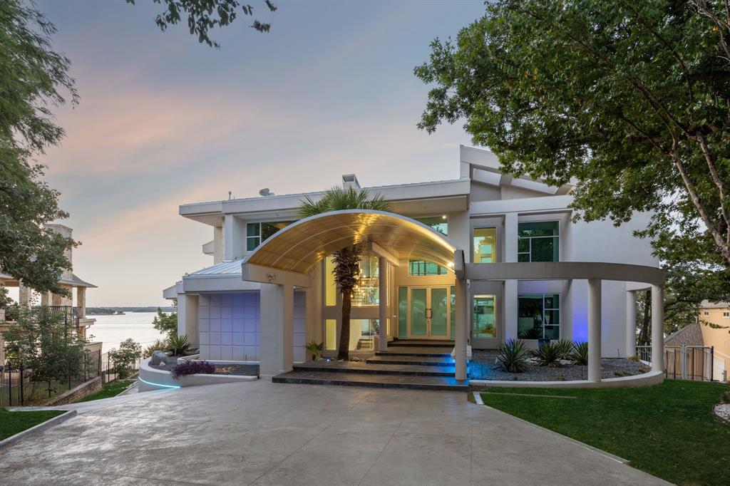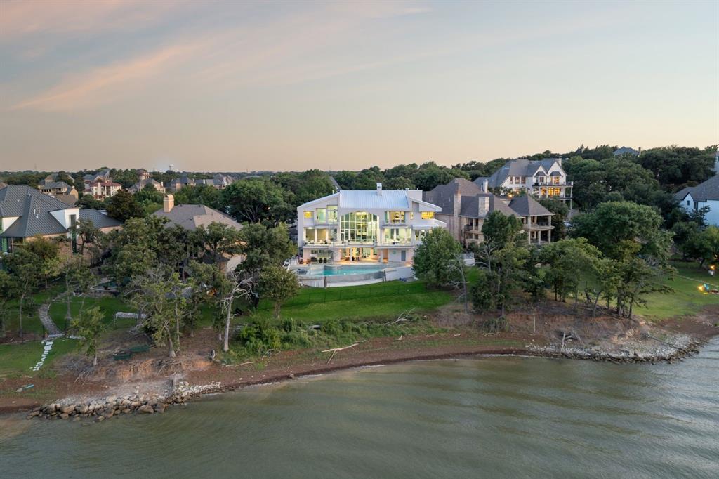 Where cutting-edge design meets the serene beauty of the water—this ultra-modern lakefront estate delivers a lifestyle like no other. Perfectly positioned on a quiet cul-de-sac and spanning an impressive 179 feet of pristine Lake Lewisville shoreline, this three-story, 8,553 sq ft showpiece offers sweeping, unobstructed lake views from nearly every room. From the moment you step inside, 30-foot ceilings and walls of commercial-grade glass frame the ever-changing blues of the lake, blurring the lines between indoors and out. Architectural artistry shines in the dramatic floating staircases, multiple view-drenched balconies, lighted art niches, and a striking floor-to-ceiling glass wine display. Designed for both grand entertaining and private escapes, the home features 4 bedrooms, 5 full baths plus a half bath, a study that could also be utilized as a 5th bedroom, media room, game room, gym, and an indoor heated spa with dry sauna. The main level hosts a chef’s dream kitchen with granite countertops, professional-grade stainless appliances, 6-burner gas cooktop, double ovens, and a Sub-Zero built-in refrigerator. The owner’s retreat is a sanctuary of its own, complete with a private balcony where you can savor sunrise over the water and end your day with mesmerizing sunsets. Outside, resort-style amenities abound—an infinity-edge pool that seemingly spills into the lake, an outdoor kitchen with grill, and multiple covered patios perfectly oriented for entertaining against a breathtaking backdrop. Energy-efficient features, a durable metal roof, and meticulous maintenance ensure this residence is as functional as it is beautiful. This is more than a home—it’s a front-row seat to the most spectacular views Lake Lewisville has to offer, and the pinnacle of waterfront luxury living.