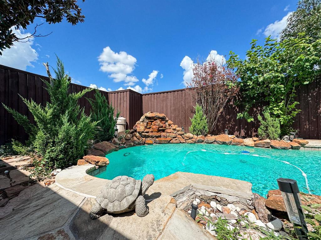 Located in a highly desirable Allen community and just steps from Spring Meadow Park, this beautiful home offers exceptional convenience—close to premium shopping, restaurants, business centers, and entertainment. Newly painter throughout! Brand new carpet! Best Allen Location! Walking distance to both the middle school and high school adds extra appeal for families. Charming magnolia trees grace the front yard, welcoming you into a thoughtfully designed home featuring an oversized primary suite on the main floor complete with a sitting area. Upstairs, you'll find three additional bedrooms and a spacious game room or second living area. The backyard is a true highlight—perfect for entertaining with a stunning pool, low-maintenance landscaping, and a covered outdoor patio for relaxing on hot summer days. Recent updates include a new roof and gutters