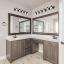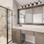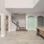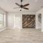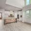 Open-concept layout with elegant arches and rounded corners. Chef’s kitchen with large island, shiplap accents, gas cooktop, under-cabinet lighting, ample cabinets, and spacious countertops. Light-colored, wood-look tile throughout main living areas for easy maintenance. Interior includes shiplap accent walls and industrial pipe shelving for added character.