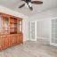 This home offers 4 spacious bedrooms, including a master suite with plantation shutters, a private study with built-ins, and a versatile upstairs game room overlooking the main living area. Additional upstairs bedroom with private ensuite bathroom and built-in desk area with industrial pipe design.
