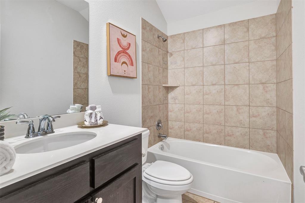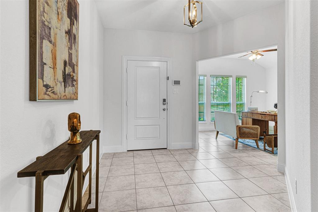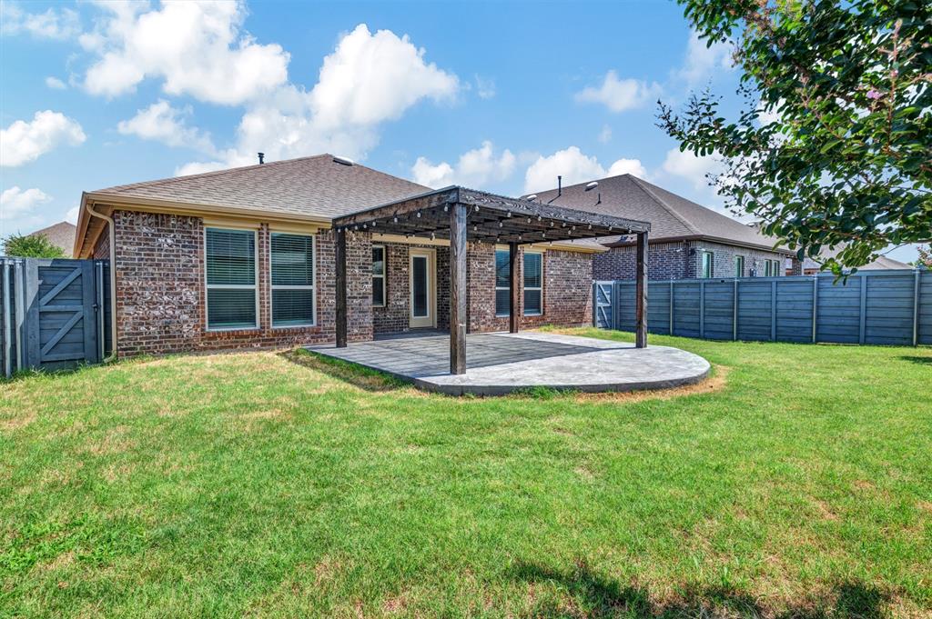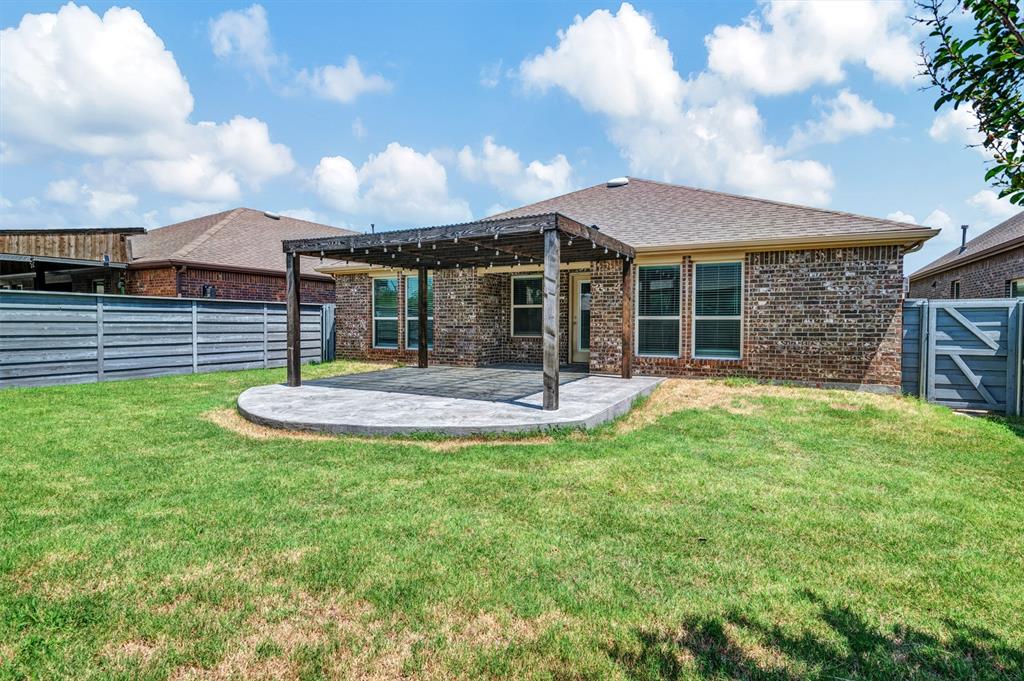 Modern comfort and thoughtful design come together in this charming 3-bedroom, 2-bath home located on a quiet street in Union Park, Aubrey. With a front office and wide, open hallways, home offers a spacious layout perfect for both everyday living and entertaining. The open-concept kitchen and living area features custom cabinets, stainless steel appliances, gas cooktop, large island, oversized pantry, and a refrigerator that stays. The split floor plan offers privacy, with two guest bedrooms at the front and a generous primary suite tucked away in the back. The primary bathroom includes double sinks, a garden tub, separate shower, and a spacious walk-in closet. Ceiling fans are found in all bedrooms, and a cozy gas fireplace adds warmth to the main living area. Step outside to a large backyard with a covered patio, added pergola, and stamped concrete—ideal for relaxing or entertaining. The garage features epoxy floors, and the smart home system allows you to control lights, doors, and security from your phone, with keyless entry for convenience. Enjoy all the amenities Union Park has to offer, including two pools, tennis and pickleball courts, a gym studio, food truck park, and a full-time lifestyle director organizing year-round events. This is more than a home—it’s a lifestyle.