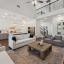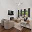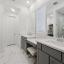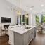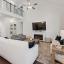 The open concept floor plan boasts soaring vaulted ceilings, large picture windows, and a curated neutral color palette that enhances the natural light. The main level includes two bedrooms: a spacious primary suite with a cozy seating area, dual vanities, large shower, and a spacious walk-in closet, plus a secondary ensuite perfect for guests or multigenerational living.