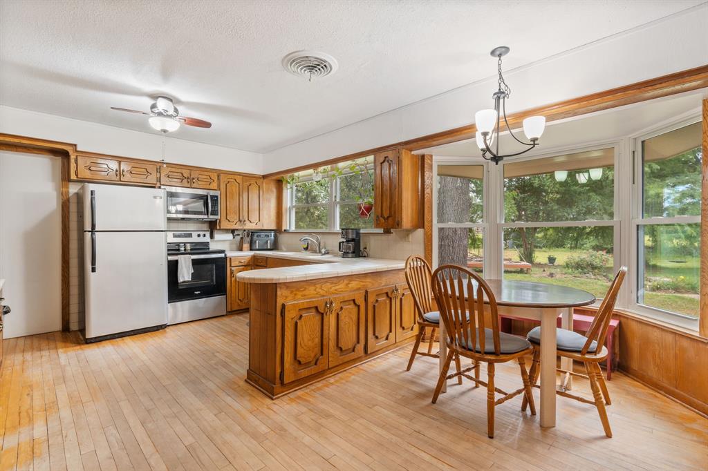 Welcome Home! This charming 4-bedroom, 1.5-bath home sits on a beautiful 4.7-acre property in the heart of Van. Featuring original hardwood floors, a cozy wood-burning fireplace, spacious living areas, and a bright sunroom, this home offers comfort and character throughout. The kitchen opens to a large dining area, perfect for everyday living and entertaining. Outside, you’ll find mature trees, a fenced pasture, a barn, and a versatile 1,000 sq ft shop with 3 floors. Located minutes from Van ISD schools and downtown, with easy access to I-20. This rare in-town acreage offers space, functionality, and room to grow don’t miss it!