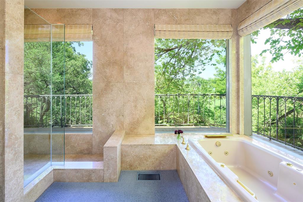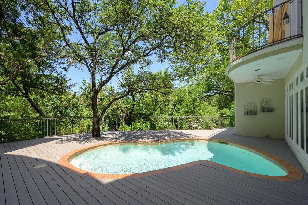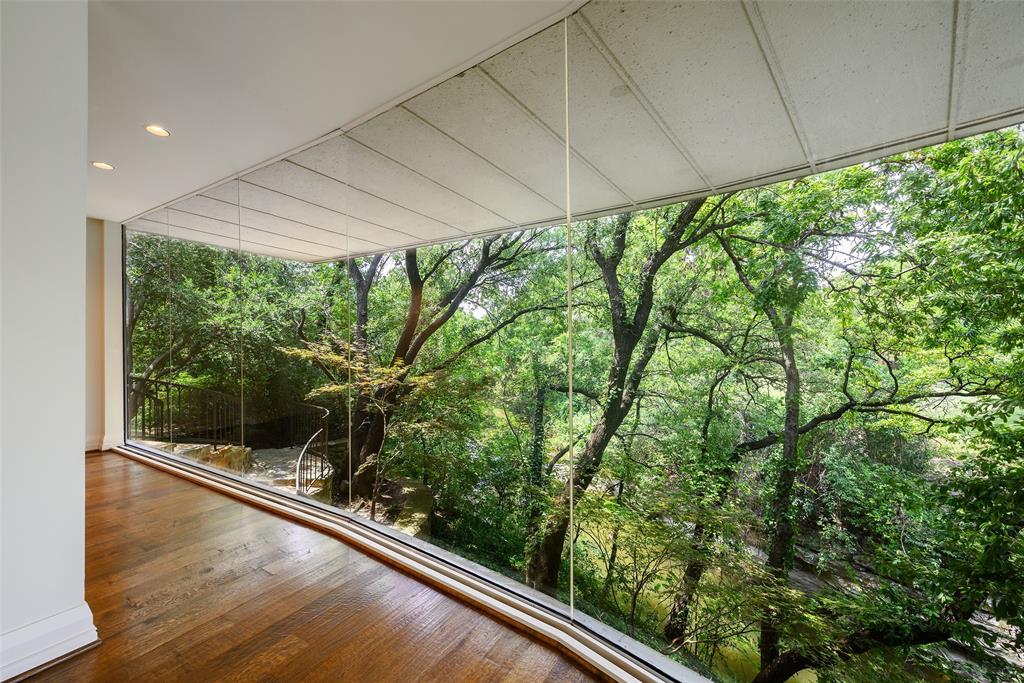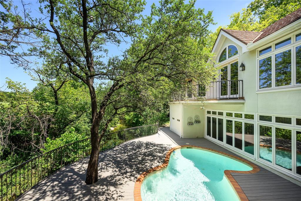 3918 Normandy is a unique Highland Park home that was custom-built for the current owners in 1986 by the modernist architectural firm Oglesby Group. This soft-contemporary gem is located at the end of a coveted quiet cul-de-sac block, with incredible views overlooking beautiful Turtle Creek and the Dallas Country Club golf course. The home’s open-concept living space boasts floor-to-ceiling windows, custom built-ins, beautiful original hardwood floors and a gas fireplace. The floor plan features four bedrooms and 5.1 bathrooms, offering ample room for both entertaining and family living. The gracious entry flows into an expansive living room and dining room with amazing views of Turtle Creek and the Dallas Country Club golf course. The kitchen includes a central island, granite countertops, stainless-steel appliances and two walk-in pantries. The butler’s pantry connects the formal dining and breakfast room, offering ample storage and facilitating entertainment. There is also an impressive study with paneling and built-ins, privately located on the other side of the entry hall from the living areas. The first-floor master suite provides a serene retreat, a sitting area complemented by a mosaic tile fireplace, and a Juliette balcony overlooking the sparkling pool and with beautiful views of Turtle Creek and the Dallas Country Club golf course. The expansive primary bathroom features dual vanities, water closets, a jetted tub, a separate shower, and separate oversized walk-in closets. Three additional bedrooms include full bathrooms and walk-in closets. On the lower level, a Saltillo tile game room with a full bathroom and wet bar opens to the wraparound deck and private pool oasis, offering stunning vistas of the creek and extensive landscaping. The 100x180 landscaped lot is a standout in Highland Park, conveniently positioned between Mockingbird and Hillcrest, and within close proximity to Highland Park High School, HP Village and various parks, shops and dining.