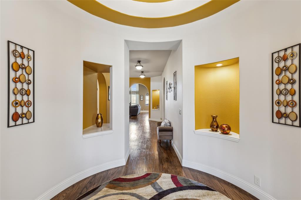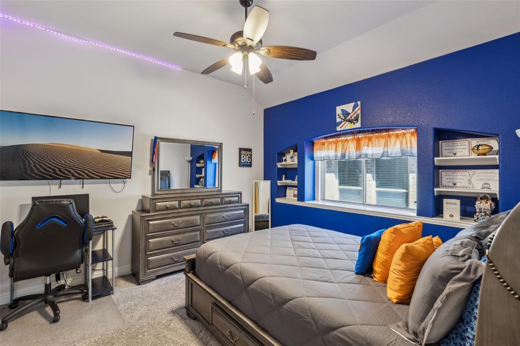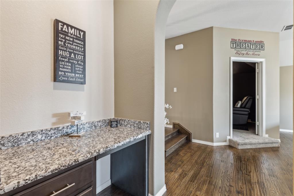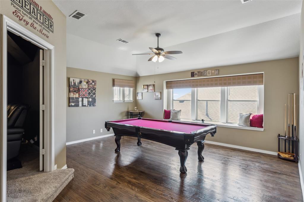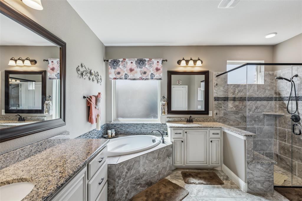 Forney Living at Its Finest! Enter this breathtaking 5-bedroom, 4.5-bath estate and experience modern elegance at every turn. The grand foyer welcomes you with soaring ceilings and an abundance of natural light, setting the stage for this exceptional home. At the heart of the home, the inviting living room features a stunning custom beamed ceiling and a stately stone fireplace, perfect for cozy gatherings. The enviable eat-in kitchen is a chef’s dream, boasting a large island with seating, built-in stainless steel appliances, granite countertops, ample storage, and a bright breakfast nook. A formal dining room offers the perfect space for intimate dinners, while French doors open to a comfortable home office. The downstairs primary suite is a true retreat, featuring a spacious sitting area and a spa-like ensuite with separate vanities, a soaking tub, a walk-in shower, and a generous walk-in closet. Upstairs, you'll find expansive secondary bedrooms, a bonus family room, and an impressive media room—ideal for entertaining or relaxing. Enjoy outdoor living in the private backyard with a covered patio, perfect for unwinding or hosting guests. Situated in a prime Forney location, this home offers easy access to top community amenities. Don't miss the opportunity to make this stunning estate yours! 3D tour available online!