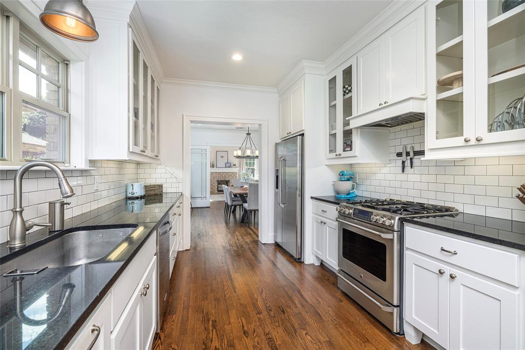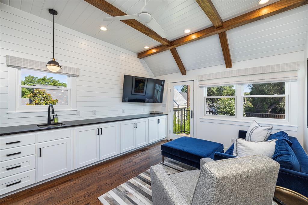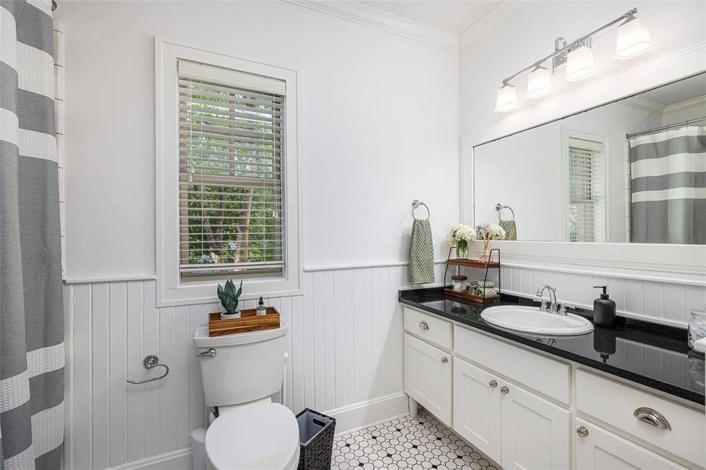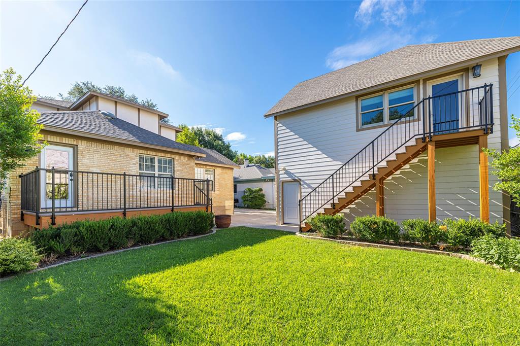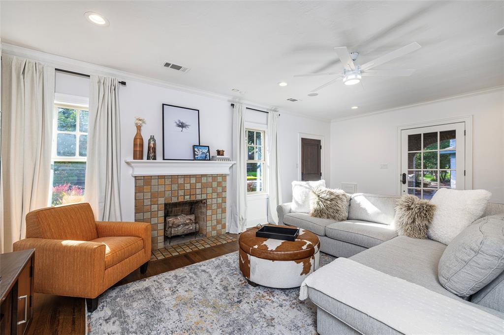 PRISTINE TCU TUDOR IS HIGHLIGHTED BY CHARACTER, WARMTH AND AMENITIES ONE DOESN'T FIND IN HOMES 100 YEARS OLD. EXCELLENT CARE AND UPDATES THAT ARE IN KEEPING WITH THIS CLASSIC CREATE A HOME YOU WILL LOVE RETURNING TO. SPACIOUS FRONT PATIO ENCOURAGES NEIGHBORHOOD FRIENDSHIPS. GORGEOUS OAK HARDWOOD FLOORS, TALL CEILINGS, STUNNING MOULDINGS INCLUDING WAINSCOTING AND CHAIR RAIL, SOLID CORE DOORS, AN ABUNDANCE OF WINDOWS, RECESSED LIGHTING. THE SECOND FLOOR IS THE OWNER'S RETREAT CONSISTING OF AN OVERSIZED BEDROOM WITH SEATING AREA, FULL BATH AND SPACIOUS WALK-IN CLOSET INSURE PRIVACY TEAMED WITH LUXURY. THE STUDY CAN EASILY BE A SECOND LIVING AREA. WELL EQUIPPED KITCHEN WITH DARK GRANITE COUNTERTOPS, DUEL FUEL RANGE, MICROWAVE DRAWER, BEVERAGE AND FULL SIZED FRIG, MODERN CABINETRY WITH PULL OUT DRAWERS, GLASS FRONT CABINETS AND EVERY CONVENIENCE. SEPARATE LAUNDRY-MUD ROOM WITH SLATE FLOOR. THE SPACIOUS TWO CAR GARAGE AND GUEST HOUSE ARE 5 YEARS OLD. TREX DECKING AND STAIRS. ACCESS TO PRIVATE BACK YARD THROUGH IRON GATE WITH OPENER. SQUARE FOOTAGE INCLUDES THE 572 SQUARE FOOT GUEST HOUSE CONSISTING OF A LIVING ROOM, BEDROOM, BATH AND KITCHEN SPACE.