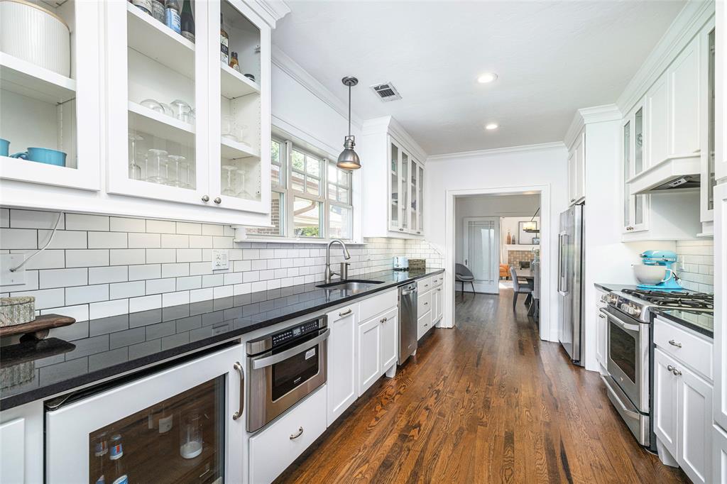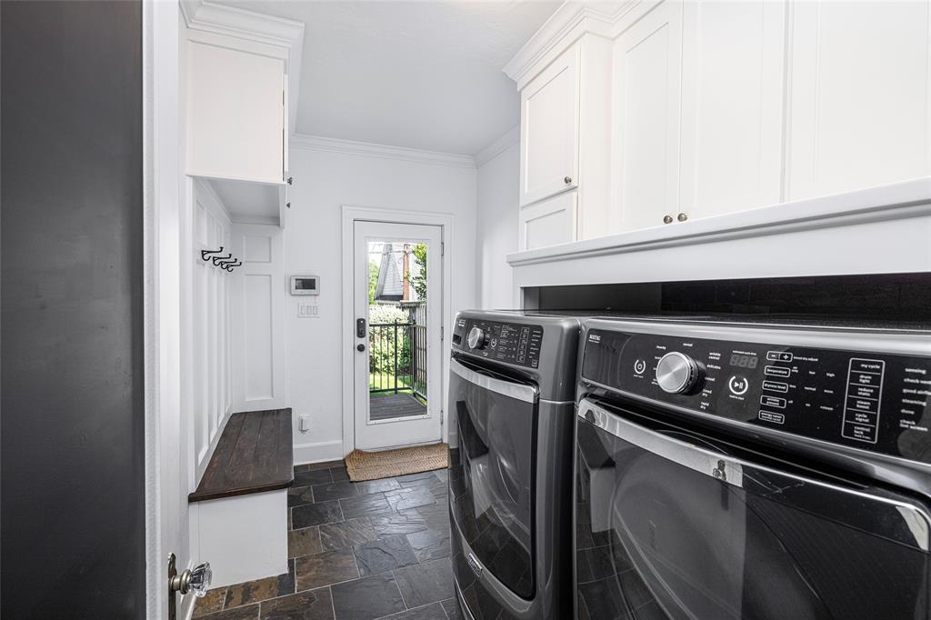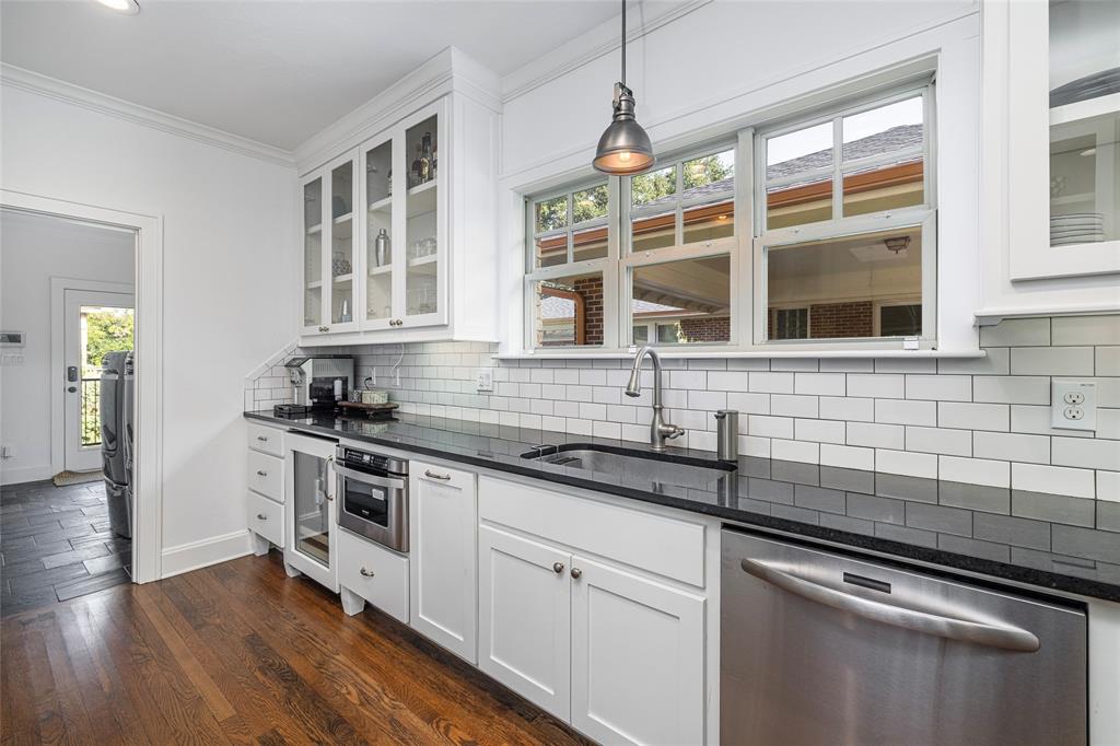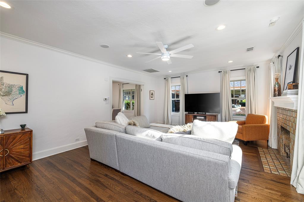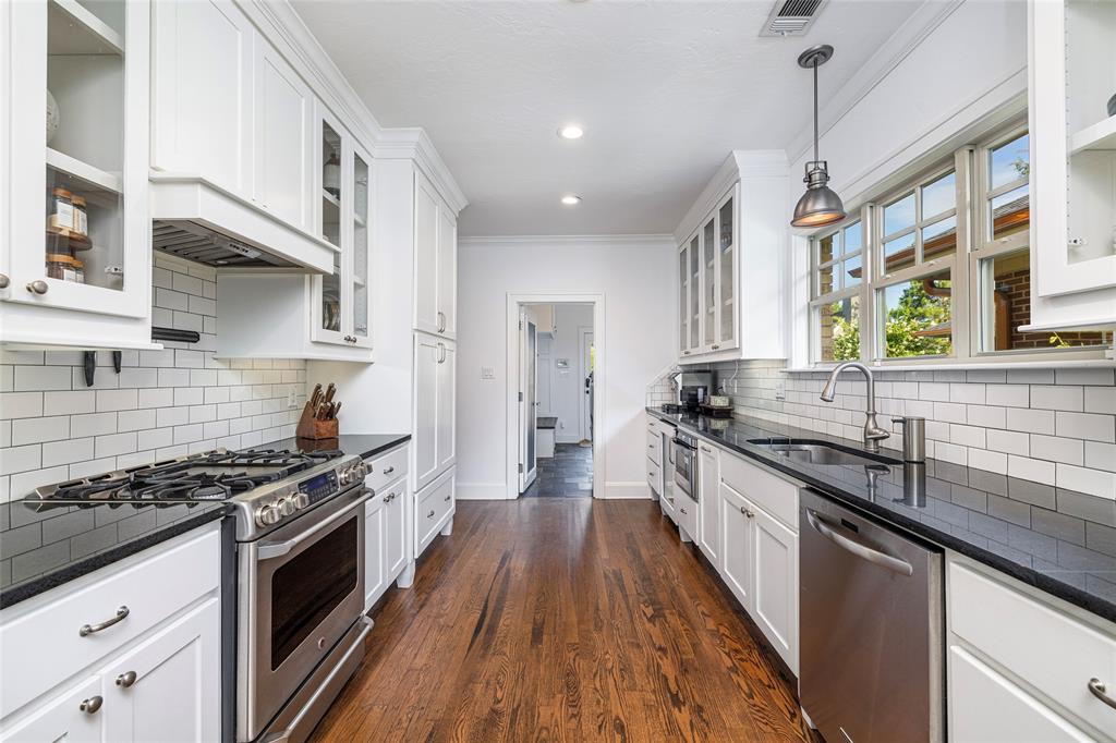 PRISTINE TCU TUDOR IS HIGHLIGHTED BY CHARACTER, WARMTH AND AMENITIES ONE DOESN'T FIND IN HOMES 100 YEARS OLD. EXCELLENT CARE AND UPDATES THAT ARE IN KEEPING WITH THIS CLASSIC CREATE A HOME YOU WILL LOVE RETURNING TO. SPACIOUS FRONT PATIO ENCOURAGES NEIGHBORHOOD FRIENDSHIPS. GORGEOUS OAK HARDWOOD FLOORS, TALL CEILINGS, STUNNING MOULDINGS INCLUDING WAINSCOTING AND CHAIR RAIL, SOLID CORE DOORS, AN ABUNDANCE OF WINDOWS, RECESSED LIGHTING. THE SECOND FLOOR IS THE OWNER'S RETREAT CONSISTING OF AN OVERSIZED BEDROOM WITH SEATING AREA, FULL BATH AND SPACIOUS WALK-IN CLOSET INSURE PRIVACY TEAMED WITH LUXURY. THE STUDY CAN EASILY BE A SECOND LIVING AREA. WELL EQUIPPED KITCHEN WITH DARK GRANITE COUNTERTOPS, DUEL FUEL RANGE, MICROWAVE DRAWER, BEVERAGE AND FULL SIZED FRIG, MODERN CABINETRY WITH PULL OUT DRAWERS, GLASS FRONT CABINETS AND EVERY CONVENIENCE. SEPARATE LAUNDRY-MUD ROOM WITH SLATE FLOOR. THE SPACIOUS TWO CAR GARAGE AND GUEST HOUSE ARE 5 YEARS OLD. TREX DECKING AND STAIRS. ACCESS TO PRIVATE BACK YARD THROUGH IRON GATE WITH OPENER. SQUARE FOOTAGE INCLUDES THE 572 SQUARE FOOT GUEST HOUSE CONSISTING OF A LIVING ROOM, BEDROOM, BATH AND KITCHEN SPACE.