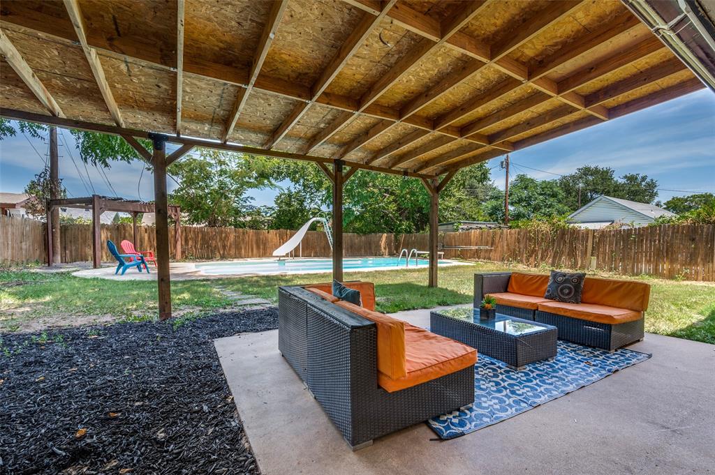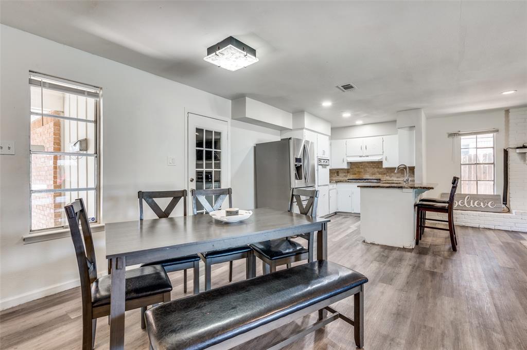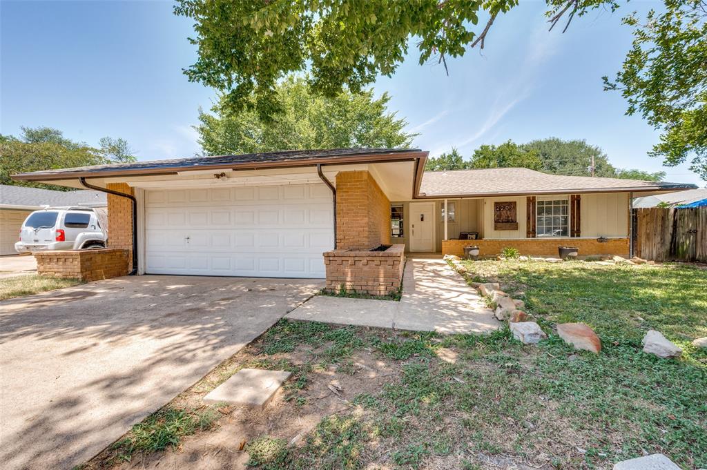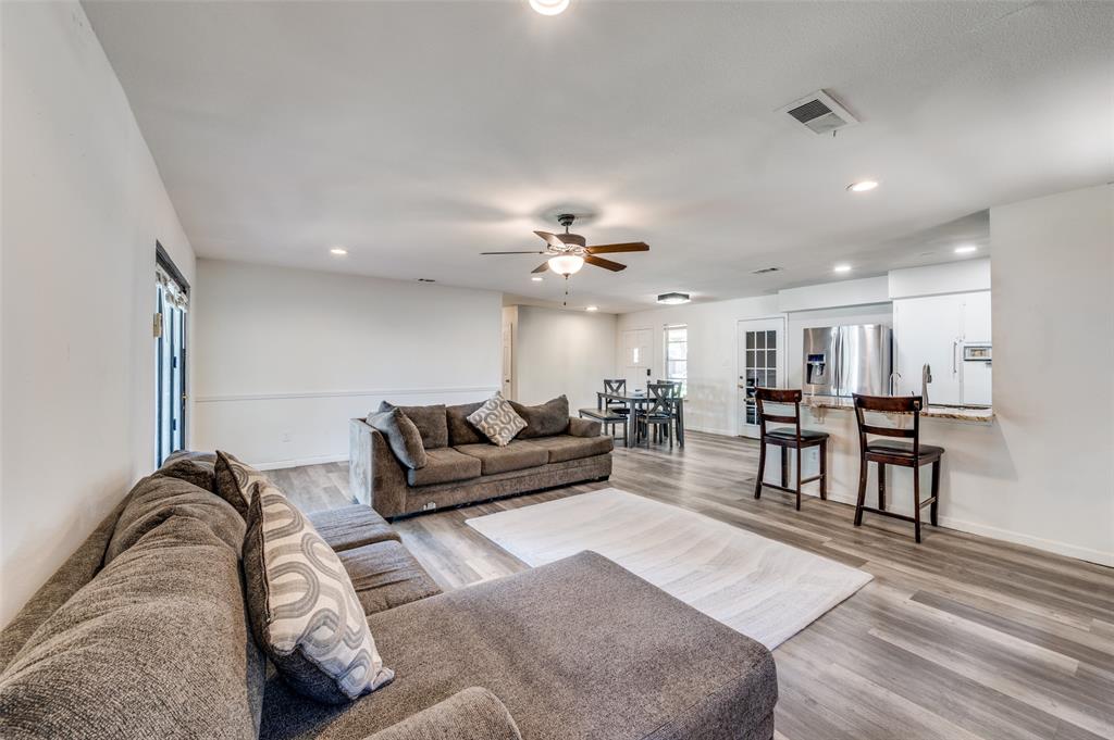 Welcome to your new home in this cute Irving neighborhood with beautiful mature trees. Step inside to discover the inviting open layout accentuated by sleek newer flooring throughout. A favorite feature is the spacious living room with a decorated fireplace area as the focal point, with views and direct access to the gorgeous & spacious backyard & pool. The open kitchen features nice granite countertop & includes extra breakfast bar seating. The primary bedroom features its private bathroom.