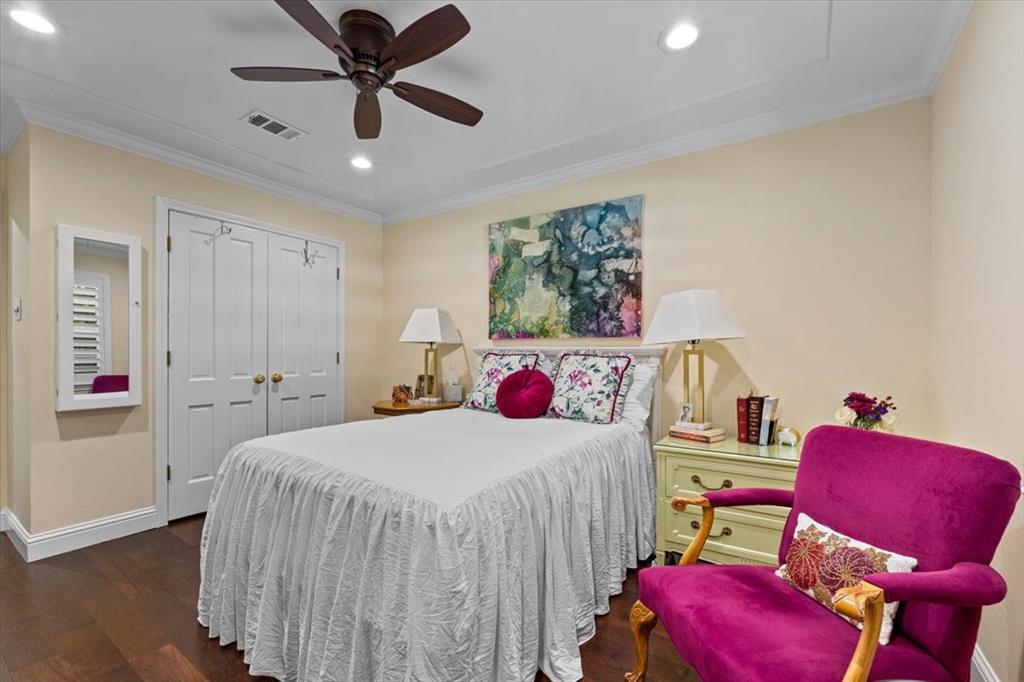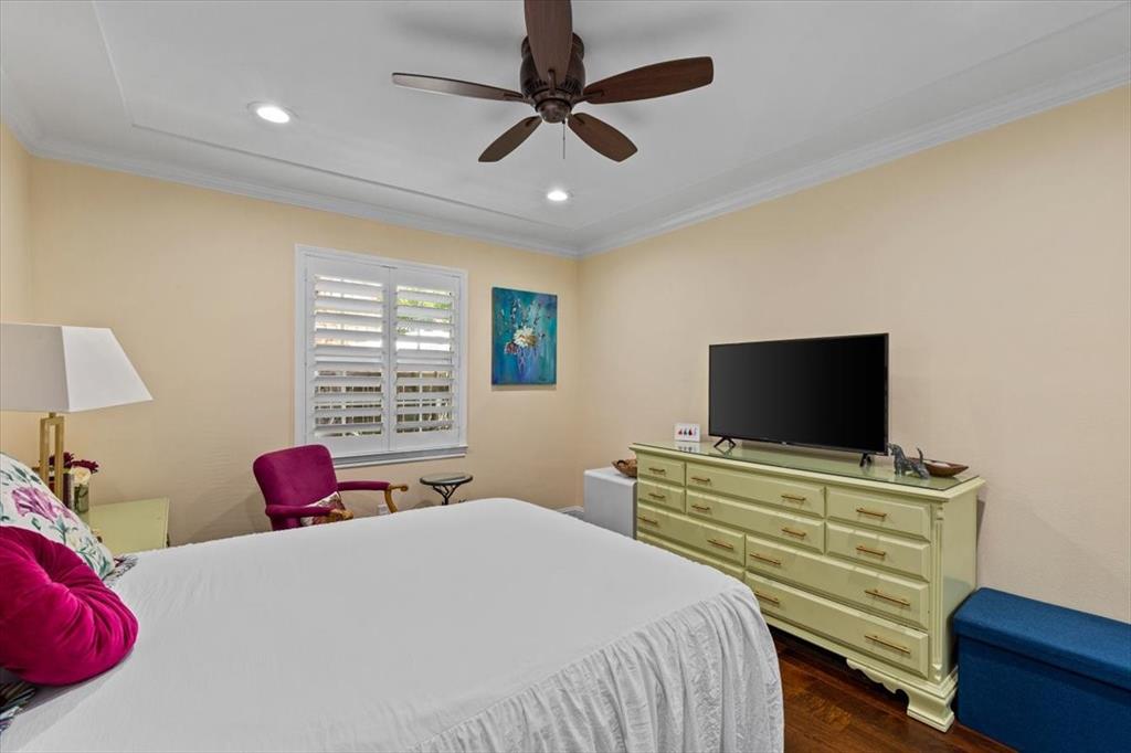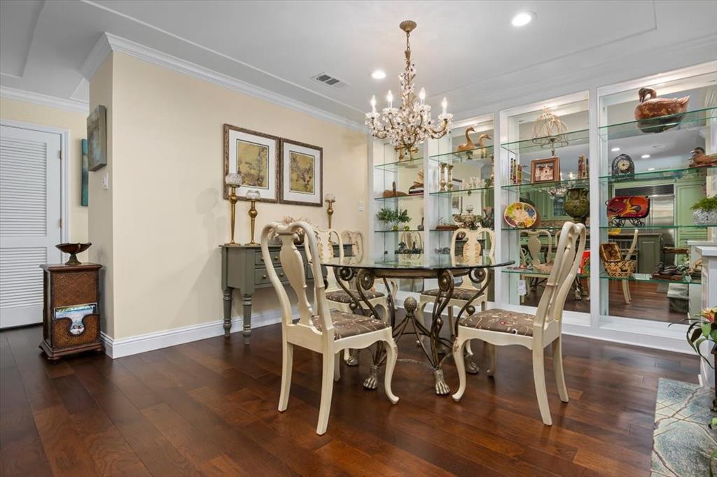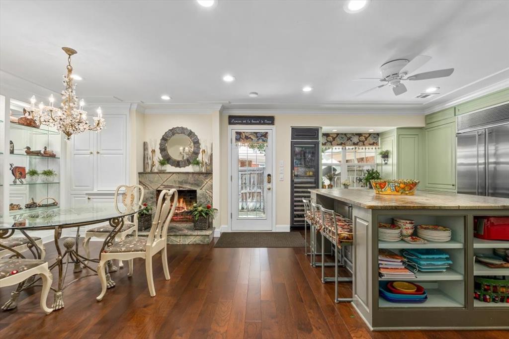 Tucked in the desirable South HOA of Indian Creek Condos, this exceptional 2-bedroom, 2-bathroom home is a true jewel box, filled with luxurious finishes and thoughtful details throughout. The chef’s kitchen is a standout, featuring 30” Miele double ovens, a 48” built-in Northland refrigerator with icemaker, a 24” dual-zone beverage and wine center, inset cabinetry, under-cabinet lighting, custom hardware, and a massive 5' x 6' island topped with rainforest marble. The honed black countertops, pot filler, Fisher & Paykel cooktop and vent hood, under counter Wolf drawer microwave, and large walk-in pantry with built-in lighting complete this gourmet space. The adjoining dining room showcases a floor-to-ceiling custom built-in with glass shelves, mirrored backing, and display lighting, while the living room offers custom plantation shutters and a striking exposed brick wall. The flexible floor plan allows for the living and dining spaces to be flipped to suit your needs. A fireplace with a custom rainforest marble surround echoes the elegance of the kitchen island. The primary bedroom features an attached bath with a fully enclosed steam shower, oversized bench, porcelain tile surround, marble flooring, and a farmhouse sink atop a marble vanity. A built-in desk with bookshelves and stone countertop adds versatility, and a closet houses a laundry space with optional stacking configuration. The second bedroom offers generous space and custom plantation shutters. The hallway bath is equally refined, with a Kohler air soaking tub, chiseled marble surround and flooring, artist edition Kohler sink, and a marble-topped vanity with storage. Step outside to a beautifully landscaped patio enclosed by a brand-new 6’+ privacy fence and gate—ideal for relaxing or entertaining. This impeccably curated condo is a rare find in a well-established community, offering refined living with unmatched attention to detail. Electric and water included in monthly dues!