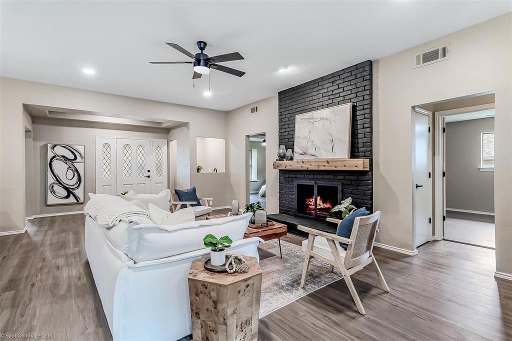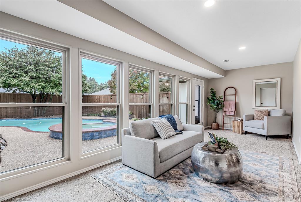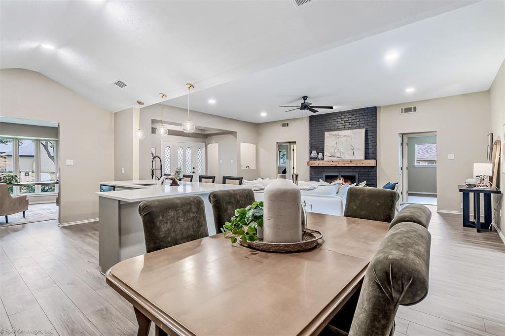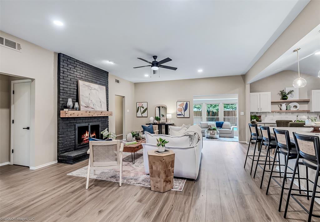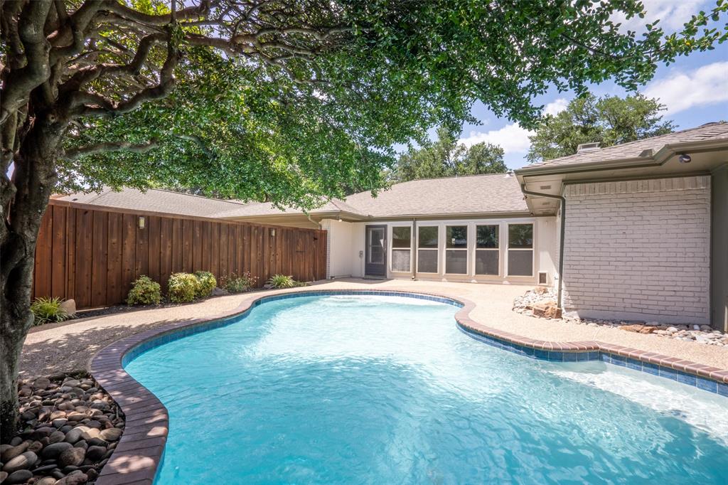 Charming 1973 Single Story Home completed with Modern Upgrades and Pool. 4BR + 3Bath + 2Car + 2-3 Living Areas. Step into this beautifully completely remodelled gem located in one of the most desirable neighbourhoods in Plano. Nestled on a spacious lot, this 2,697sf home flows beautifully for entertaining, living and with flexibility with multiple rooms depending to tailor to your needs. Formal dining is staged as a dedicated office area. 4th Bedroom can serve as a media-game room, or a 3rd living area, or a MIL quarters. The formal dining is staged as dedicated office. The sunroom can also be used as a playroom, or a reading area, or an art studio. The diffused natural light in this home is amazing. Open concept in the kitchen, family and dining area. Contemporary kitchen with designer countertops and stylish backsplash, light fixtures and water fixture. The large island provides additional prep and seating space. Family room has woodturning fireplace for cold nights. Separate dedicated spacious Utility Room. The Primary Suite includes separate vanities and dressing areas. Oversized updated master bath shower with barn door seamless glass door. This meticulously renovated home combines timeless architecture with modern comforts. HOA Amenities: Park, Club House, Tennis Courts, Playground and more! Located near shopping and great schools. Very close to major thoroughfares to get around the City efficiently. Don't miss this incredible opportunity to own a piece of modernised 1970's charm! See supplements for list of updated upgrades.