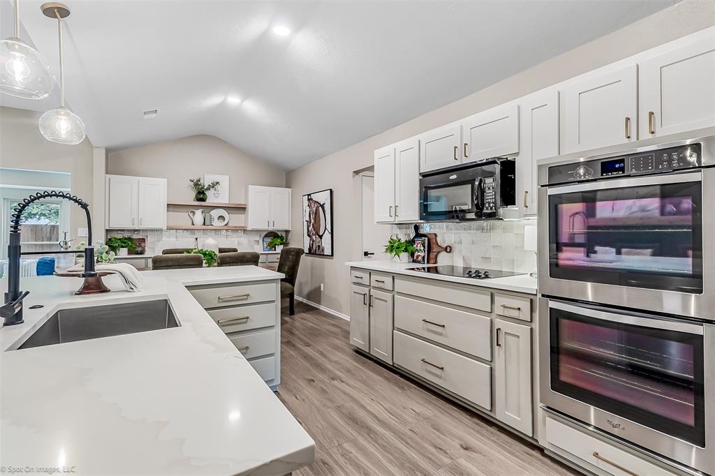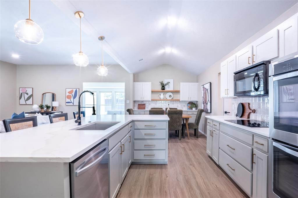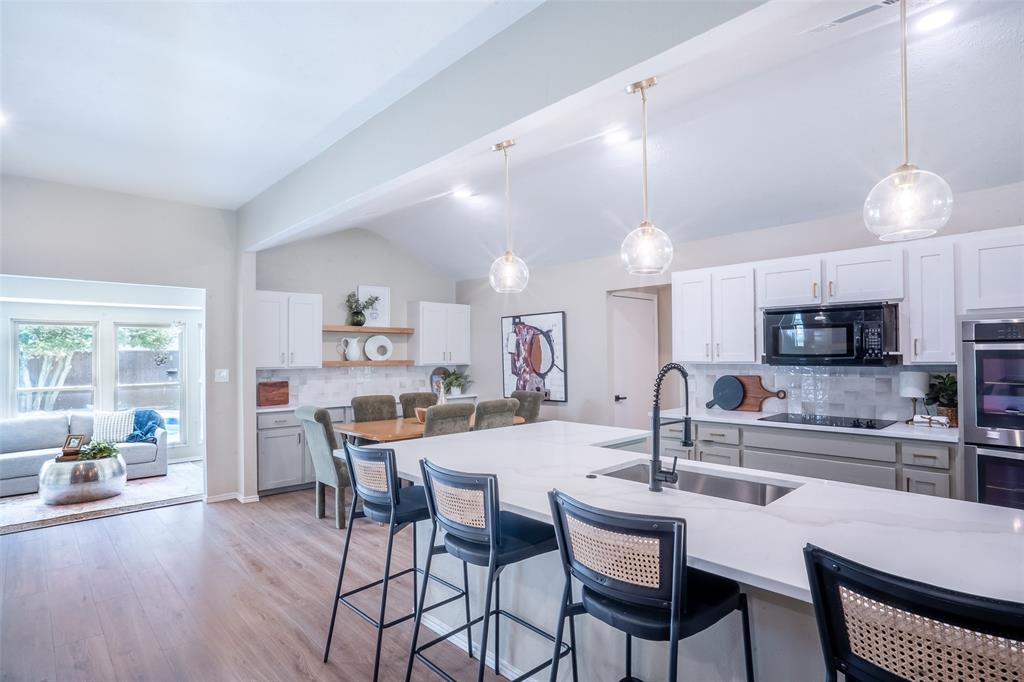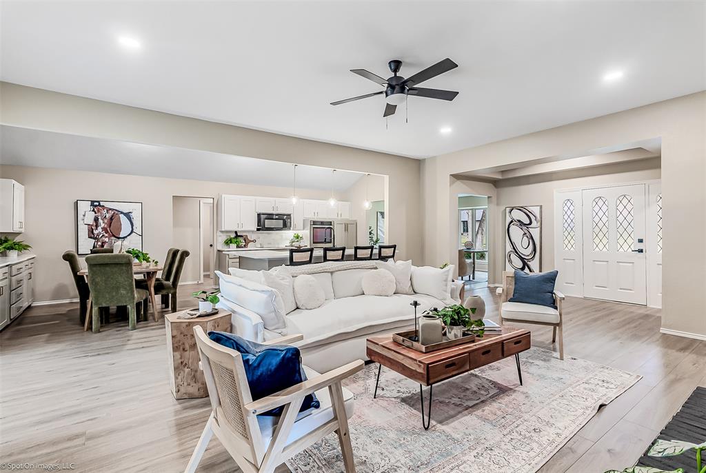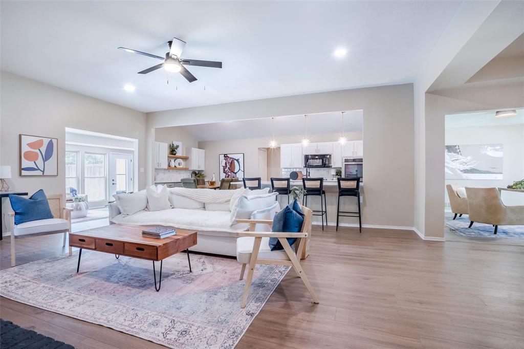 Charming 1973 Single Story Home completed with Modern Upgrades and Pool. 4BR + 3Bath + 2Car + 2-3 Living Areas. Step into this beautifully completely remodelled gem located in one of the most desirable neighbourhoods in Plano. Nestled on a spacious lot, this 2,697sf home flows beautifully for entertaining, living and with flexibility with multiple rooms depending to tailor to your needs. Formal dining is staged as a dedicated office area. 4th Bedroom can serve as a media-game room, or a 3rd living area, or a MIL quarters. The formal dining is staged as dedicated office. The sunroom can also be used as a playroom, or a reading area, or an art studio. The diffused natural light in this home is amazing. Open concept in the kitchen, family and dining area. Contemporary kitchen with designer countertops and stylish backsplash, light fixtures and water fixture. The large island provides additional prep and seating space. Family room has woodturning fireplace for cold nights. Separate dedicated spacious Utility Room. The Primary Suite includes separate vanities and dressing areas. Oversized updated master bath shower with barn door seamless glass door. This meticulously renovated home combines timeless architecture with modern comforts. HOA Amenities: Park, Club House, Tennis Courts, Playground and more! Located near shopping and great schools. Very close to major thoroughfares to get around the City efficiently. Don't miss this incredible opportunity to own a piece of modernised 1970's charm! See supplements for list of updated upgrades.
