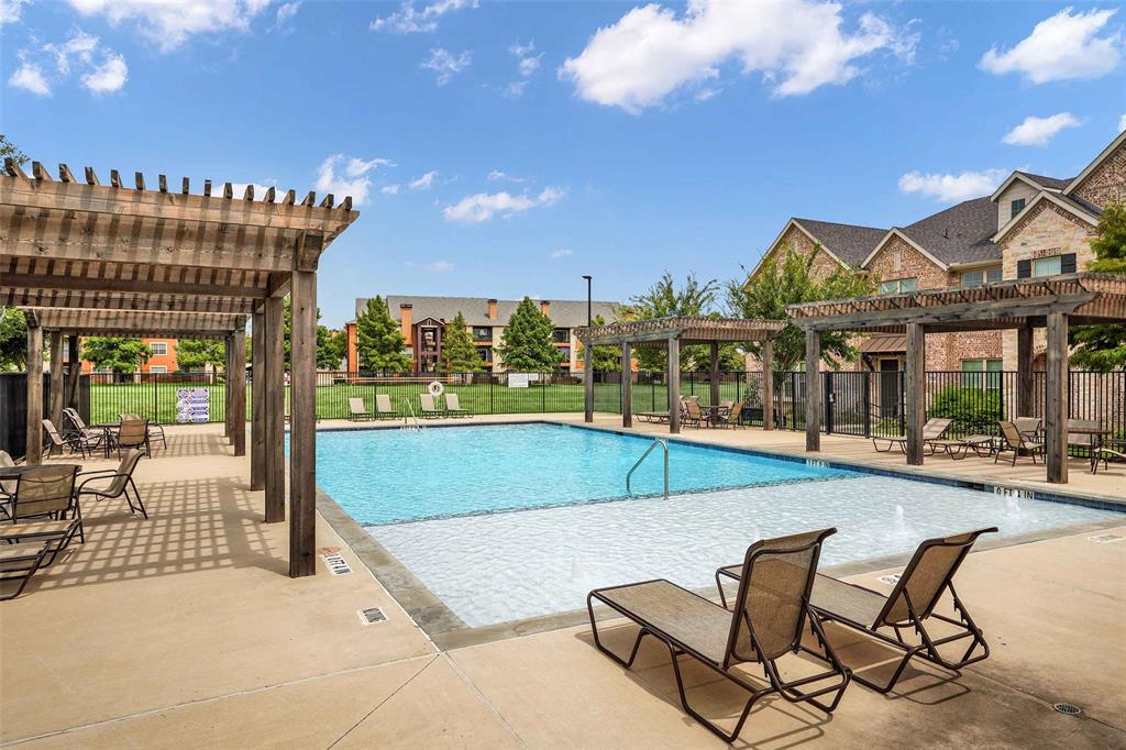 Light and bright townhouse featuring today’s neutral colors—move-in ready! This desirable corner unit sits directly across from the community pool and offers a thoughtfully designed, low-maintenance lifestyle—perfect for lock-and-leave living. The 2-car garage with additional parking options provides rare convenience for homeowners and guests alike, making entertaining a breeze. Inside, enjoy direct entry into a well-appointed kitchen with gas range, stainless steel appliances, quartz countertops, and an open floor plan that flows seamlessly into the living and dining areas. Upstairs, the spacious primary suite is accompanied by two secondary bedrooms and a bonus flex space ideal for a home office, gym, or playroom. An ideal blend of style, function, and location—don’t miss this one! Great central location to DFW airport, shopping, restaurants and an easy commute to Dallas and Fort Worth.