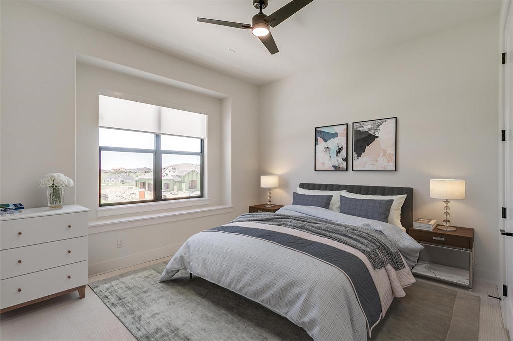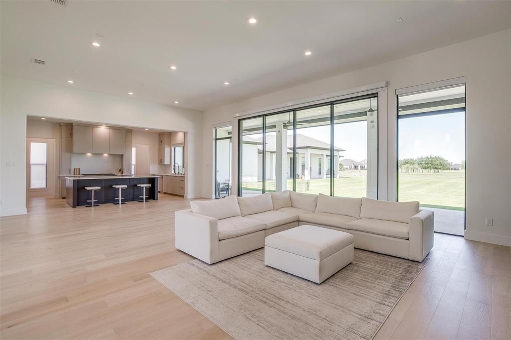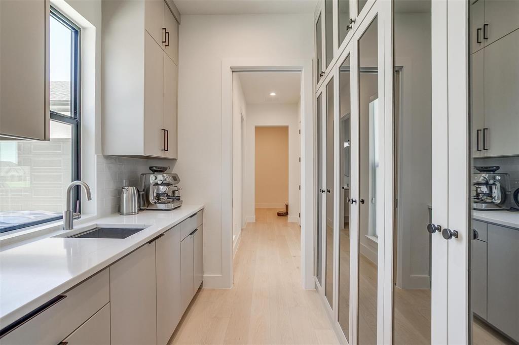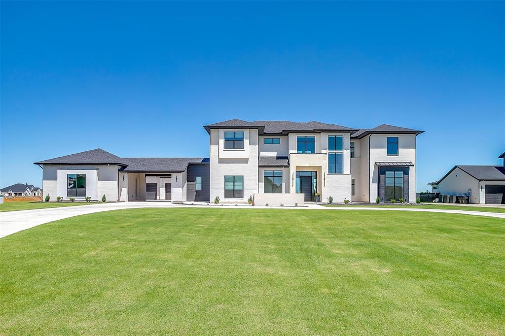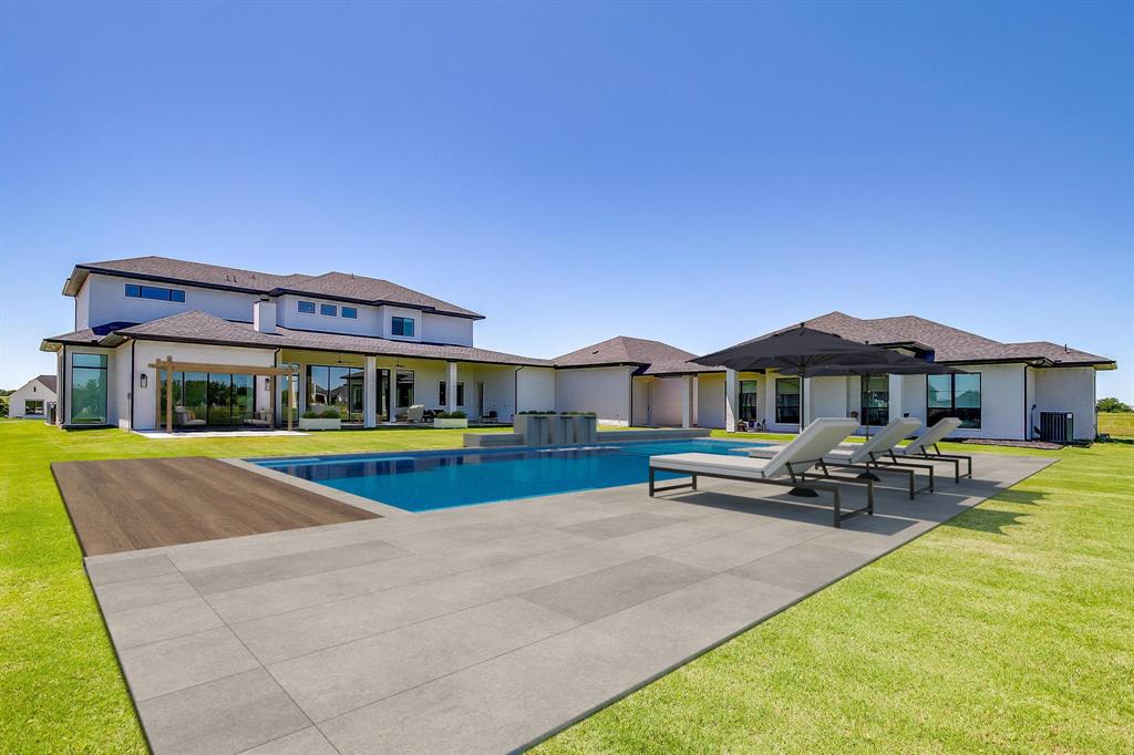 Welcome to this JAAVA Custom Home, where timeless design meets modern sophistication, located in the highly desirable Bella Crossing community within Aledo ISD. Recently completed in June 2024 and barely lived in, this like-new estate offers over 4,700 square feet of expertly crafted living space in the main residence, plus a separate 1,400+ square foot guest home—perfect for multigenerational living or extended-stay guests. Step inside to find European white oak flooring, soaring ceilings, and a seamless blend of warm, natural finishes with contemporary design elements. The heart of the home is a chef’s dream kitchen featuring top-of-the-line Thermador appliances, custom cabinetry, an oversized island, and a separate butler’s area with additional sink and hidden pantry —ideal for both everyday living and entertaining. The main home includes four spacious bedrooms, each with its own en-suite bathroom, along with two additional half baths. The primary suite, located on the main level, offers a spa-inspired bathroom with a soaking tub, luxury shower, dual walk-in closets, and private patio access—creating a serene retreat. A dedicated home office with floor-to-ceiling built-ins combines style and functionality, while upstairs you’ll find two additional bedrooms, a game room, a media room with whole-home wired AV closet, a flex space ideal for a gym or second office, and a dry bar. The guest residence mirrors the quality of the main home, offering two bedrooms, two bathrooms, a full kitchen and walk in pantry, laundry room, and its own private covered porch. Home has 2 separate garages, a 3 car and a 2 car, split between a motor court. This is a rare opportunity to own a meticulously designed, move-in-ready custom estate in one of the area's most prestigious communities. Pool is virtually staged. Pool rendering with quote available upon request.