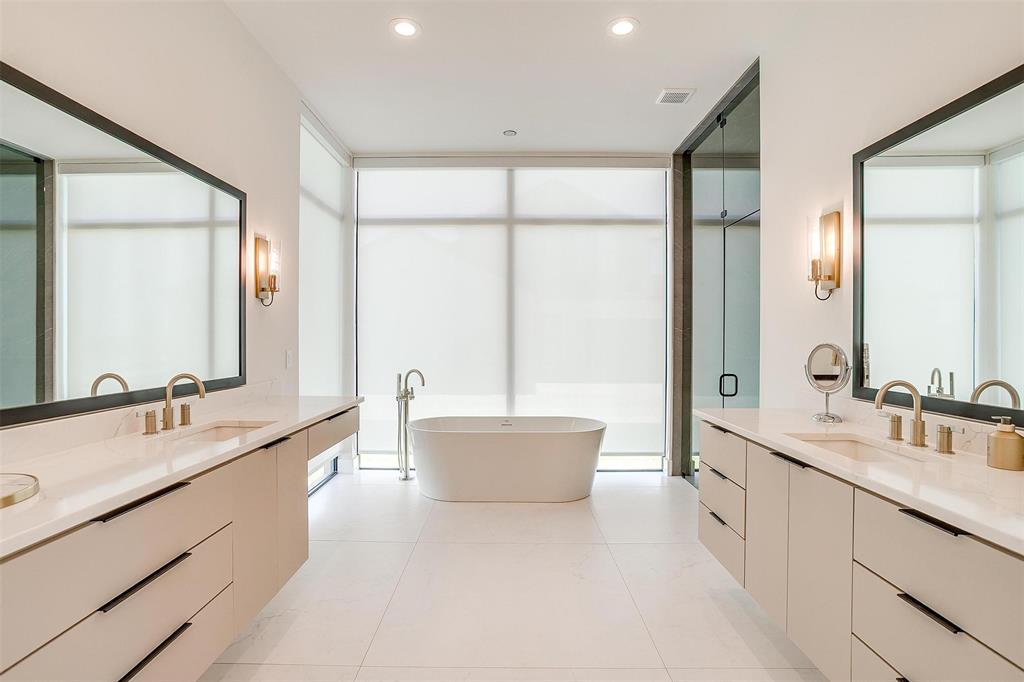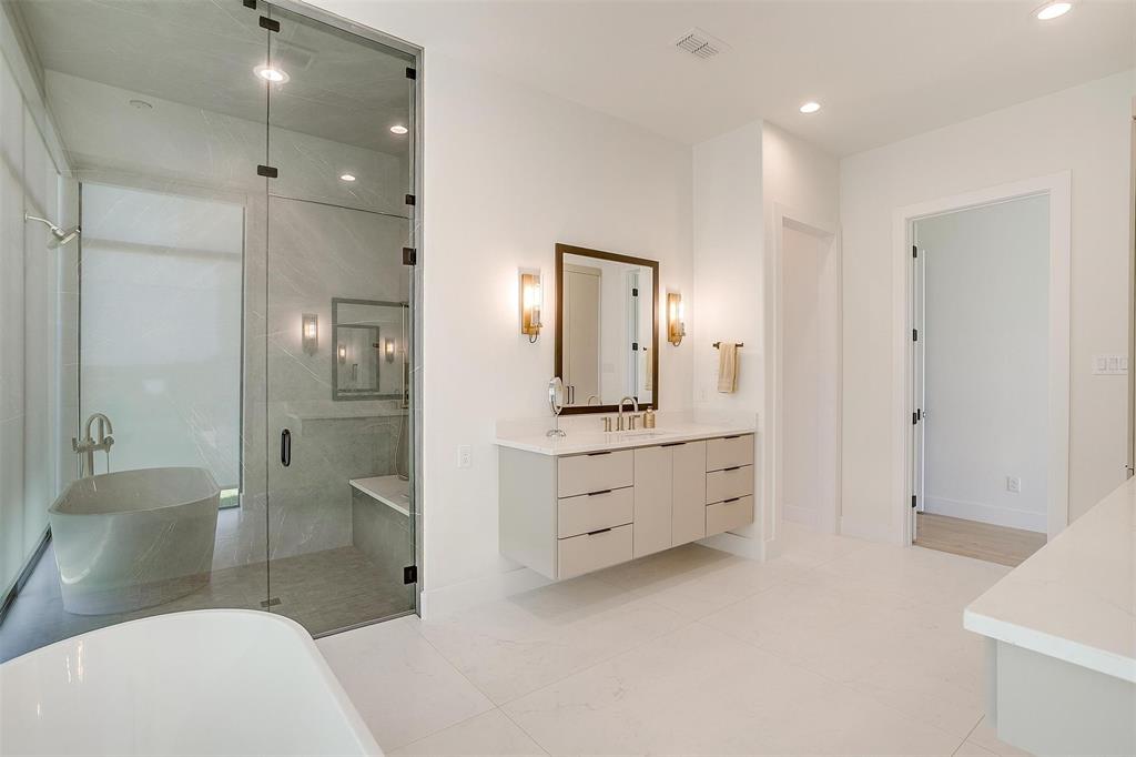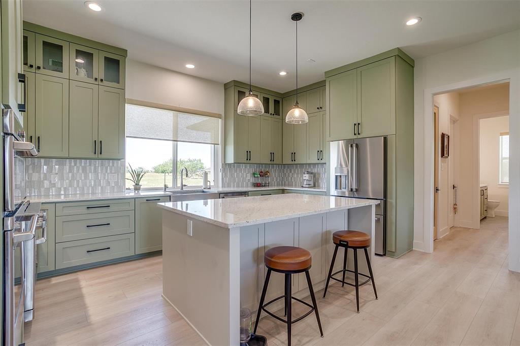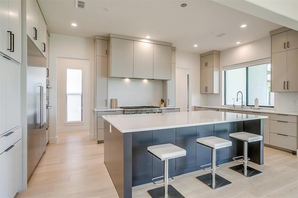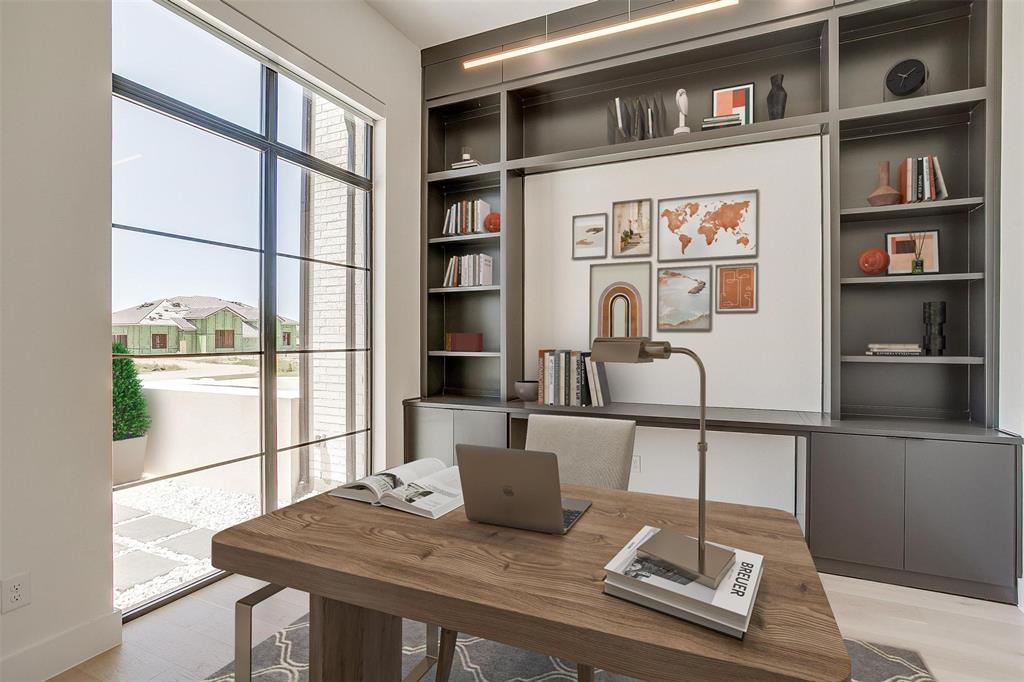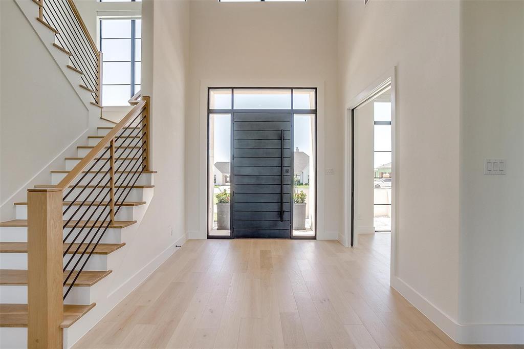 Welcome to this JAAVA Custom Home, where timeless design meets modern sophistication, located in the highly desirable Bella Crossing community within Aledo ISD. Recently completed in June 2024 and barely lived in, this like-new estate offers over 4,700 square feet of expertly crafted living space in the main residence, plus a separate 1,400+ square foot guest home—perfect for multigenerational living or extended-stay guests. Step inside to find European white oak flooring, soaring ceilings, and a seamless blend of warm, natural finishes with contemporary design elements. The heart of the home is a chef’s dream kitchen featuring top-of-the-line Thermador appliances, custom cabinetry, an oversized island, and a separate butler’s area with additional sink and hidden pantry —ideal for both everyday living and entertaining. The main home includes four spacious bedrooms, each with its own en-suite bathroom, along with two additional half baths. The primary suite, located on the main level, offers a spa-inspired bathroom with a soaking tub, luxury shower, dual walk-in closets, and private patio access—creating a serene retreat. A dedicated home office with floor-to-ceiling built-ins combines style and functionality, while upstairs you’ll find two additional bedrooms, a game room, a media room with whole-home wired AV closet, a flex space ideal for a gym or second office, and a dry bar. The guest residence mirrors the quality of the main home, offering two bedrooms, two bathrooms, a full kitchen and walk in pantry, laundry room, and its own private covered porch. Home has 2 separate garages, a 3 car and a 2 car, split between a motor court. This is a rare opportunity to own a meticulously designed, move-in-ready custom estate in one of the area's most prestigious communities. Pool is virtually staged. Pool rendering with quote available upon request.