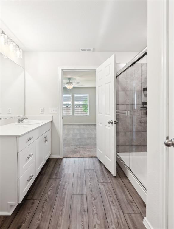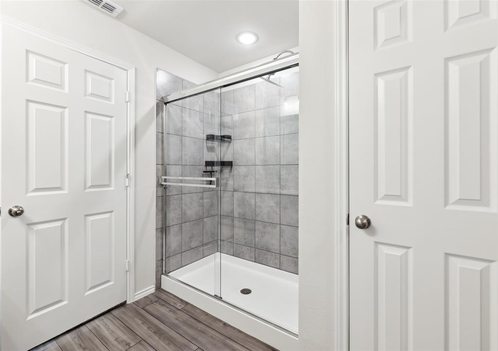 At the heart of the home is a modern kitchen equipped with stainless steel appliances, a large center island with bar seating, walk-in pantry, and ample storage—making it as functional as it is beautiful. The private primary suite offers a peaceful retreat, complete with a spacious walk-in closet, dual vanities, and a luxurious walk-in shower.