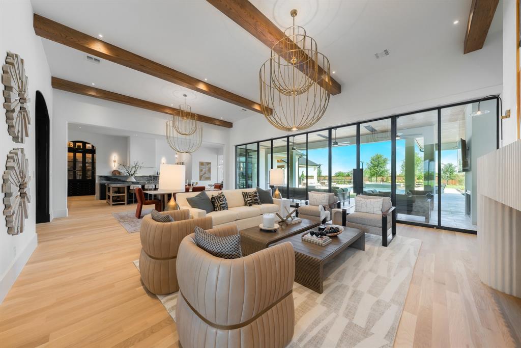 From the moment you step through the massive pivot glass front door, you’re welcomed into a grand foyer. To the left, the executive study features floor-to-ceiling custom cabinetry, while straight ahead, the great room reveals a sweeping view of the home’s extraordinary indoor and outdoor living spaces.