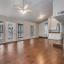 Step inside to an oversized living room with soaring ceilings, a wet bar, and an abundance of natural light streaming in from large windows overlooking the backyard. The open layout creates an inviting space for both relaxing and entertaining.