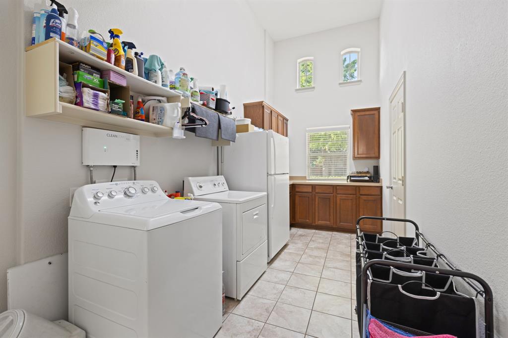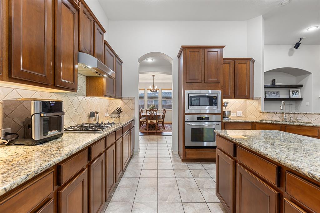 Welcome to this oversized single-story home in the sought-after Saratoga community. Designed with an open-concept layout, high ceilings, and abundant natural light, this home offers the perfect blend of comfort and style. At the heart of the home is a chef’s kitchen featuring granite countertops, an abundance of cabinet space, a large island, stainless steel appliances, and an inviting eat-in area. Just off the kitchen, you’ll find a formal dining room, ideal for hosting gatherings. The spacious living room flows seamlessly from the kitchen, offering backyard views and plenty of room for entertaining. The master suite is truly impressive, with a massive bedroom and a spa-like bathroom complete with dual sinks, a soaking tub, separate shower, and a large walk-in closet. Secondary bedrooms are generously sized with ample closet space, making them perfect for family, guests, or a home office. Convenience is key with a large utility room that includes built-in cabinetry, washer and dryer connections, and direct access to the garage. Step outside to your private backyard retreat featuring a covered patio, lush green space, and a storage shed—ideal for outdoor living and entertaining. Residents of Saratoga enjoy access to community amenities, including a sparkling pool and neighborhood park. This home combines space, function, and style—don’t miss the opportunity to make it yours!