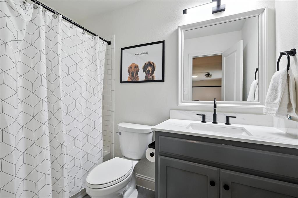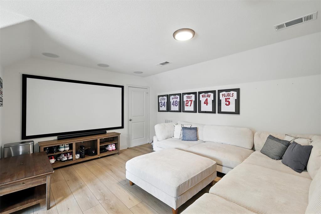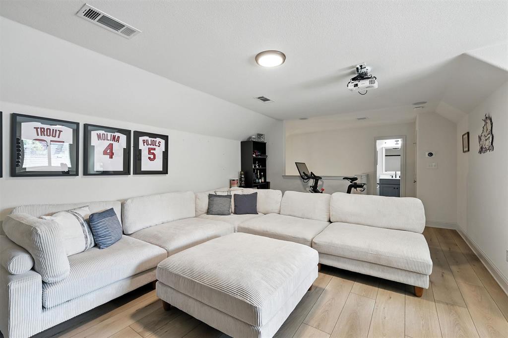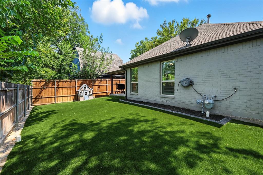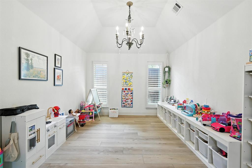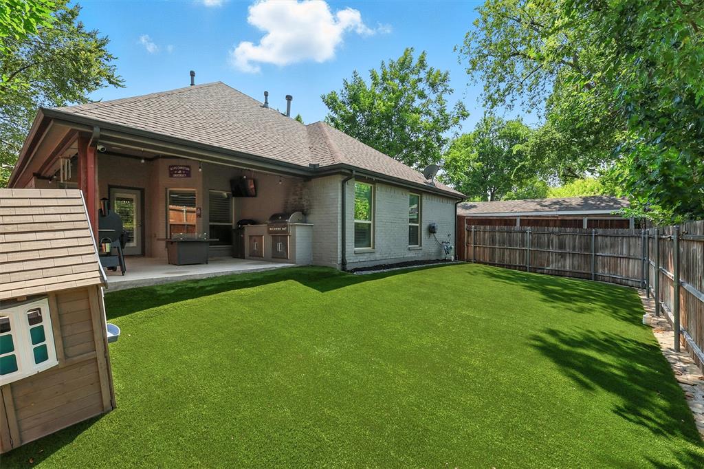 Upstairs, a sizable game room with a private full bath provides flexible space for play, work, or guests. Outside, enjoy the low-maintenance backyard with a covered patio featuring built-ins and a large synthetic turf area perfect for kids and pets.
