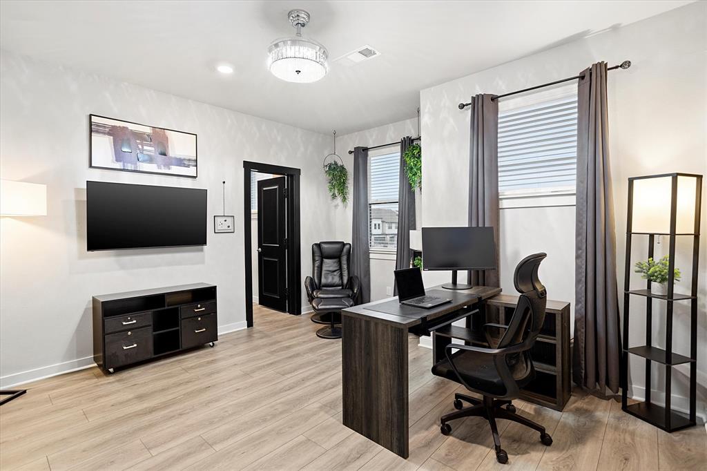 Welcome home to this charming and meticulously maintained two-bedroom, two-and-a-half-bathroom townhome in the highly sought-after Windsong Ranch community! Across the street from new, quarter-billion dollar Richland Hills High school, this stunning corner-unit offers 1,466 square feet of thoughtfully designed living space and natural lighting, blending modern elegance with cozy comfort. Step inside this bright and open floor plan that welcomes you with inviting atmosphere and charm. The spacious living area is perfect for relaxing or entertaining, while the gourmet kitchen boasts beautiful cabinetry with a sleek oversized center island, perfect for meal prep. The primary suite is a true luxury, featuring a spa-like ensuite bath and generous closet space. A well-appointed second bedroom and an additional full bath provide plenty of room for guests or a home office. The addition of the convenient half-bath adds an extra touch of functionality. Located in the vibrant Windsong Ranch community, this home offers resort-style amenities, including lush green spaces, stocked ponds, scenic walking trails, and access to the award-winning 5-acre lagoon, providing a one-of-a-kind lifestyle experience. With low-maintenance living and an unbeatable location, this home is perfect for those looking for a peaceful retreat without sacrificing modern conveniences. Come see it today and fall in love!