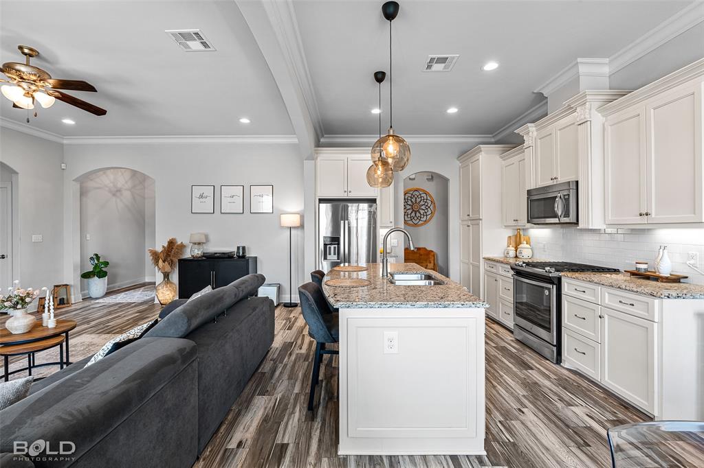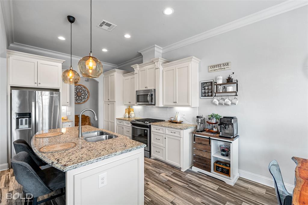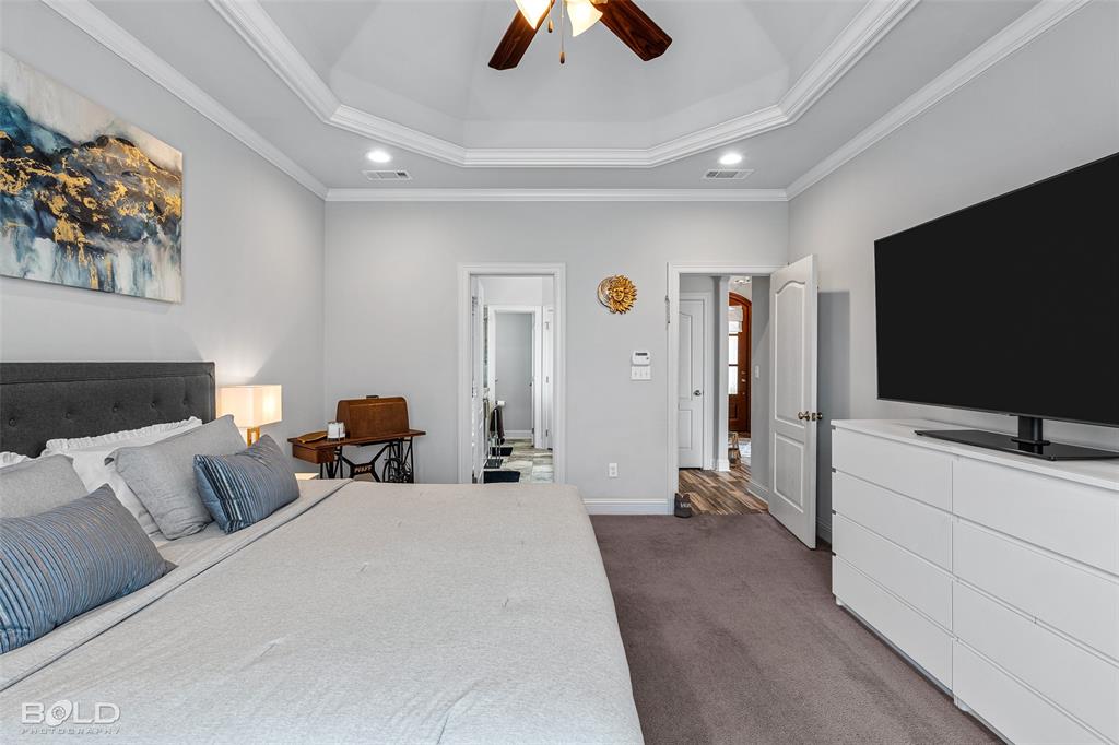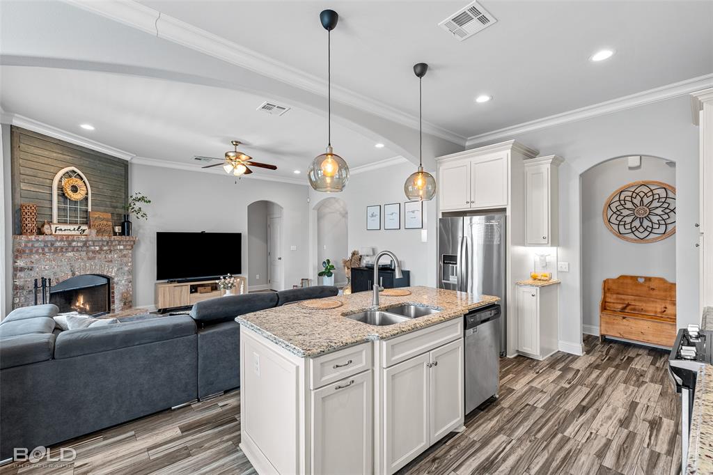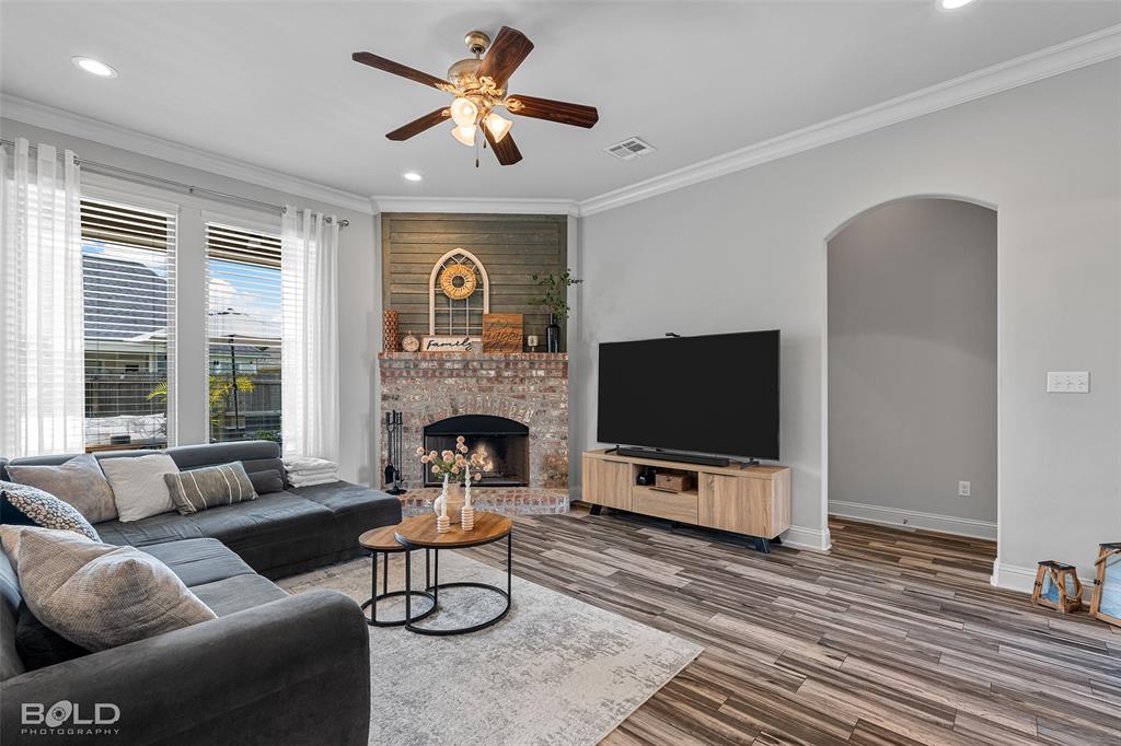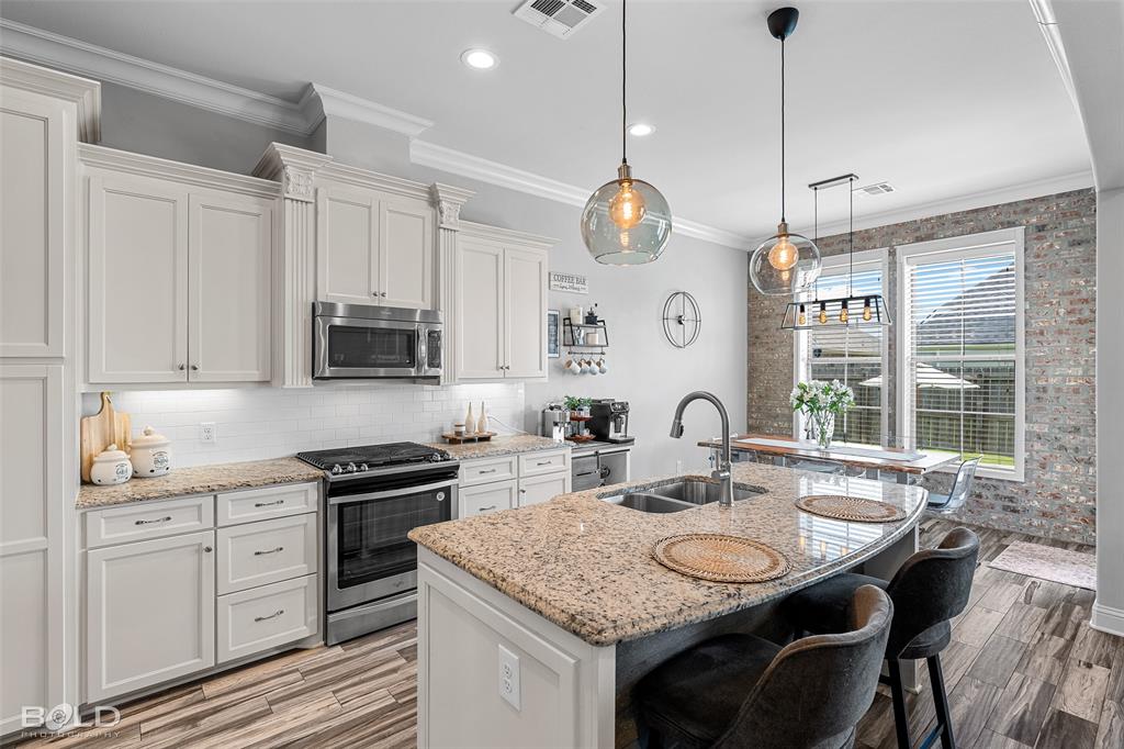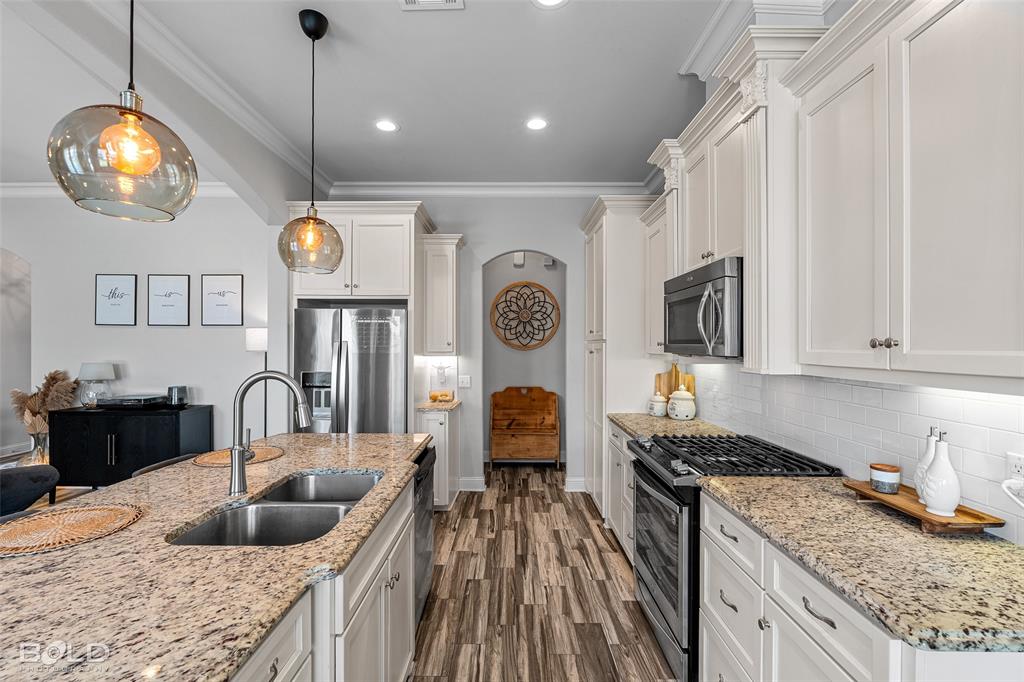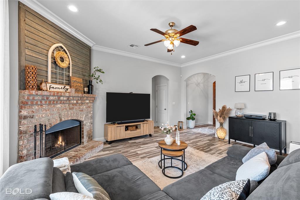 Welcome to this beautifully maintained 4-bedroom, 2-bath home situated in a cul-de-sac in Benton's sought-after Jamestowne subdivision. This thoughtfully designed space blends elegance, comfort, and functionality. Step inside through the custom front door to an open-concept layout filled with natural light, brick and wood accents, stylish fixtures, a spacious living room with gas fireplace, and a gourmet kitchen featuring granite countertops, custom cabinetry, stainless steel appliances, and bar seating. The primary suite offers a peaceful retreat with a tray ceiling, a spa-like bathroom complete with dual sinks, jetted tub, glass & stone enclosed shower and an oversized walk-in closet of your dreams! Three additional bedrooms provide flexible space for family, guests or working from home. Ceramic wood look tile throughout, with carpet in the bedrooms. Escape to your backyard oasis on the covered patio with a 12 foot extended concrete pad and plenty of room for entertaining. The oversized garage adds extra storage and convenience. This move-in-ready home truly has it all and no detail was spared! Convenient to I-220, I-20, Benton schools, hospitals, shopping, and dining!