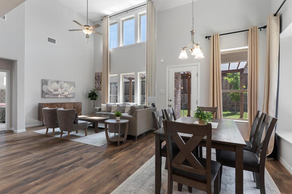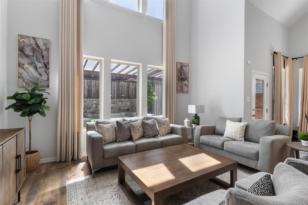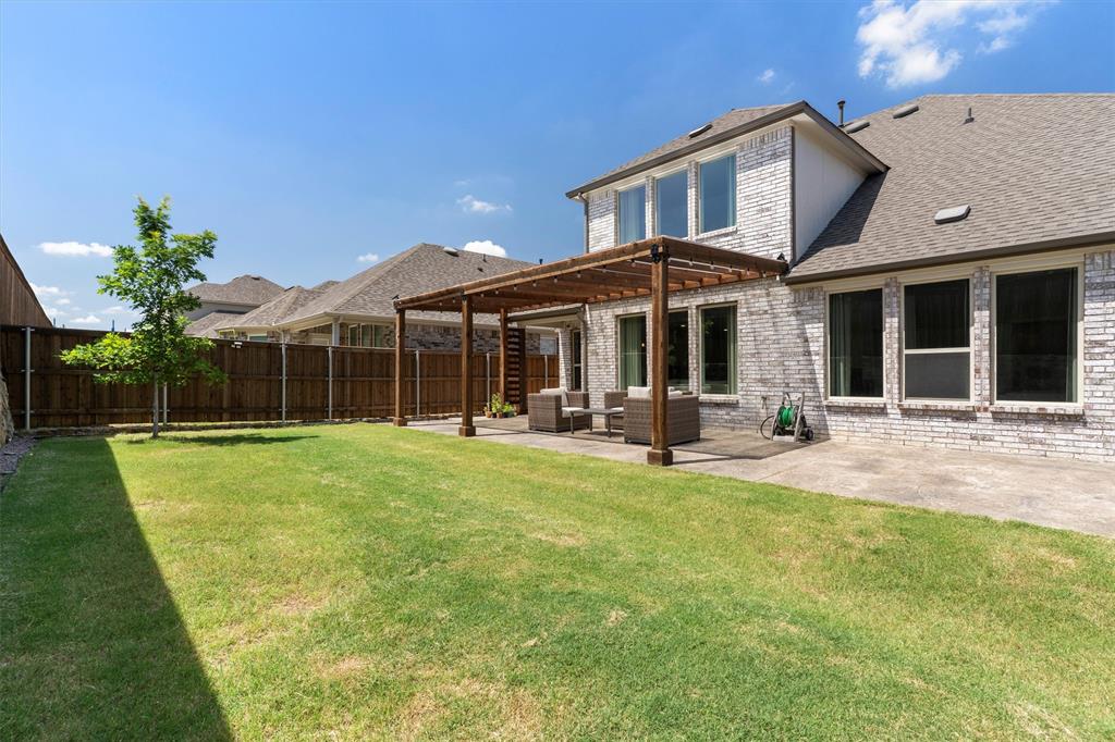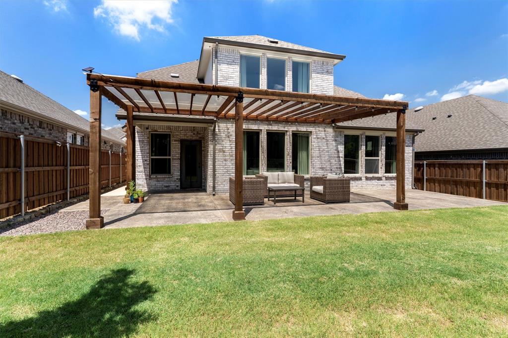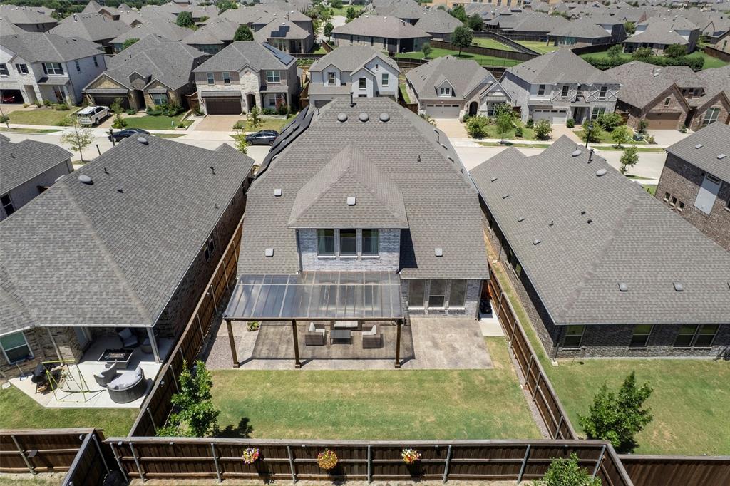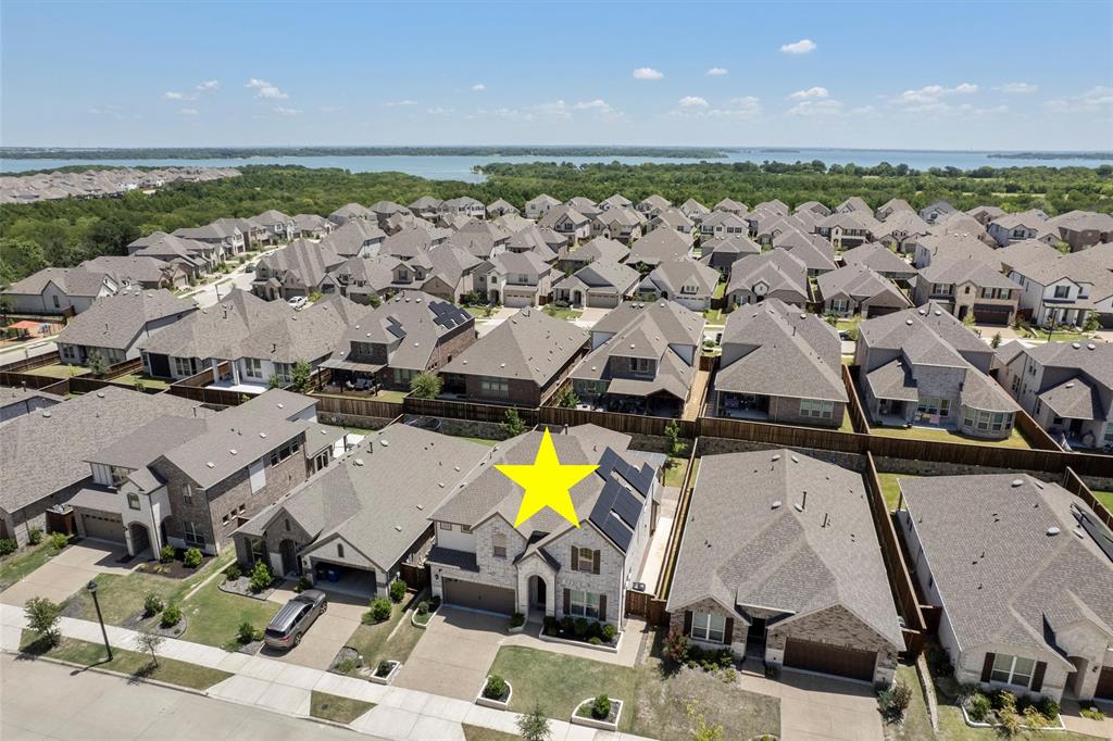 Located in the award-winning community of Inspiration along the shores of Lake Lavon, this newer-built gem offers an ideal mix of functionality, style, and smart upgrades—inside and out. From the moment you arrive, you’ll notice the pride of ownership with professionally designed stone flower beds, extended concrete walkways around the perimeter, and a charming front entry. Inside, tall ceilings and abundant natural light set the tone for a bright and open living experience. At the front of the home, a versatile room with French doors offers the perfect space for a private home office, study, or formal dining. The spacious Living Room is the heart of the home, featuring soaring ceilings, upper windows, and custom drapery for added elegance. The kitchen is a showstopper—centered around an oversized granite island that’s perfect for entertaining or casual family meals. Stainless steel appliances, sleek cabinetry, and plenty of prep space make this kitchen a dream for any home chef. The Primary Suite offers a peaceful retreat, complete with a large walk-in closet that connects directly to the laundry room for ultimate convenience. Secondary bedrooms are upstairs for privacy, and the HUGE Game Room gives you flexible space for movies, play, or hosting overnight guests. There’s even direct attic access for easy storage. Step outside to your own backyard escape—featuring an expansive stamped concrete patio with both covered and open-air areas, perfect for grilling, relaxing, or hosting gatherings. The private grassy yard is ideal for pets, play, or even a future pool. And with SOLAR PANELS already installed, you’ll enjoy energy efficiency and savings from day one! Inspiration features multiple pools, lazy river, 2 story fitness center, pickleball courts, zip line, kangaroo jumper, firepits, sand volleyball, HOA events, access to the Trinity Trail, and just minutes down the road to Collin Park Marina!