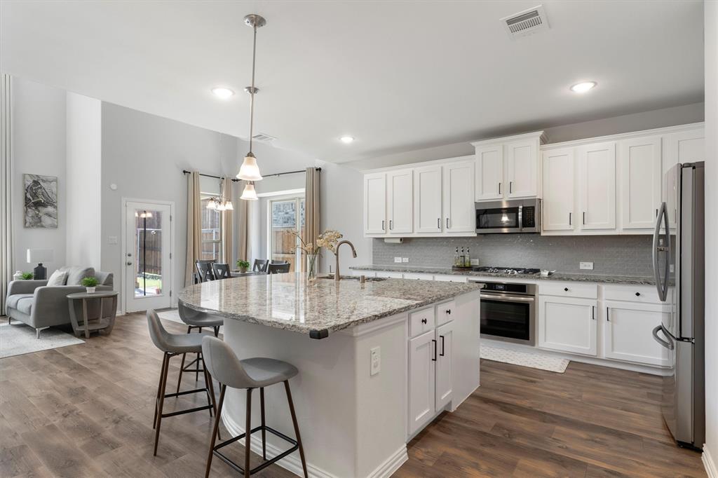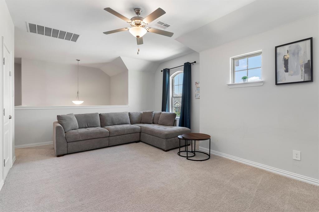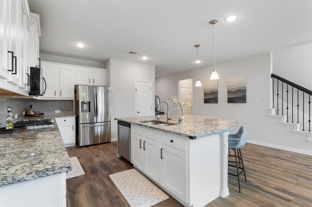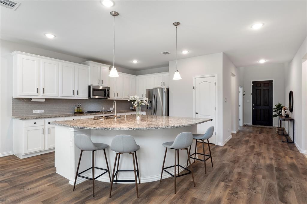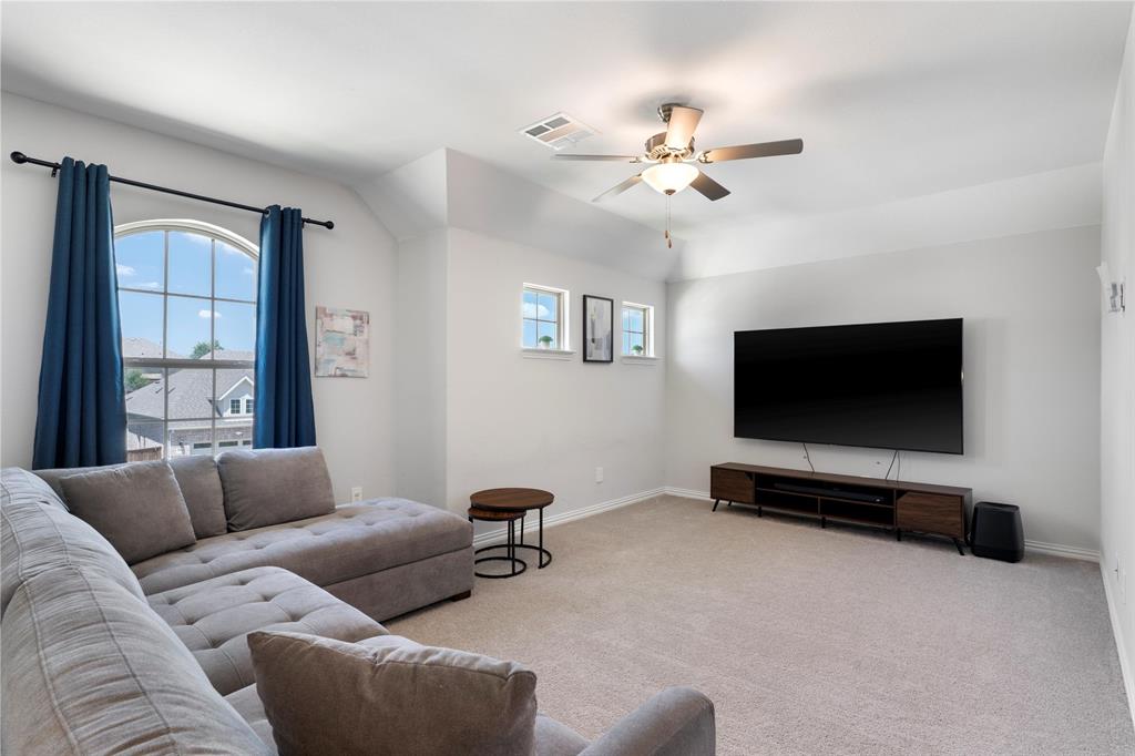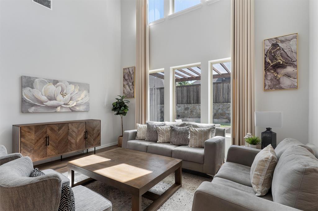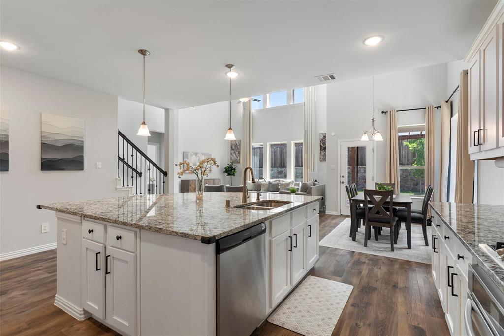 Located in the award-winning community of Inspiration along the shores of Lake Lavon, this newer-built gem offers an ideal mix of functionality, style, and smart upgrades—inside and out. From the moment you arrive, you’ll notice the pride of ownership with professionally designed stone flower beds, extended concrete walkways around the perimeter, and a charming front entry. Inside, tall ceilings and abundant natural light set the tone for a bright and open living experience. At the front of the home, a versatile room with French doors offers the perfect space for a private home office, study, or formal dining. The spacious Living Room is the heart of the home, featuring soaring ceilings, upper windows, and custom drapery for added elegance. The kitchen is a showstopper—centered around an oversized granite island that’s perfect for entertaining or casual family meals. Stainless steel appliances, sleek cabinetry, and plenty of prep space make this kitchen a dream for any home chef. The Primary Suite offers a peaceful retreat, complete with a large walk-in closet that connects directly to the laundry room for ultimate convenience. Secondary bedrooms are upstairs for privacy, and the HUGE Game Room gives you flexible space for movies, play, or hosting overnight guests. There’s even direct attic access for easy storage. Step outside to your own backyard escape—featuring an expansive stamped concrete patio with both covered and open-air areas, perfect for grilling, relaxing, or hosting gatherings. The private grassy yard is ideal for pets, play, or even a future pool. And with SOLAR PANELS already installed, you’ll enjoy energy efficiency and savings from day one! Inspiration features multiple pools, lazy river, 2 story fitness center, pickleball courts, zip line, kangaroo jumper, firepits, sand volleyball, HOA events, access to the Trinity Trail, and just minutes down the road to Collin Park Marina!